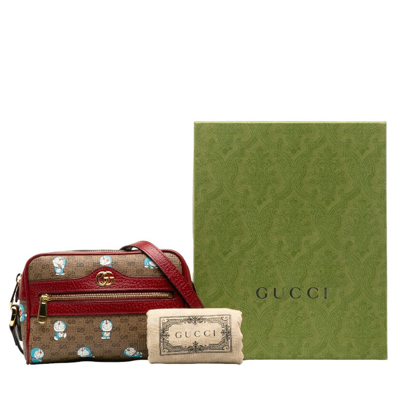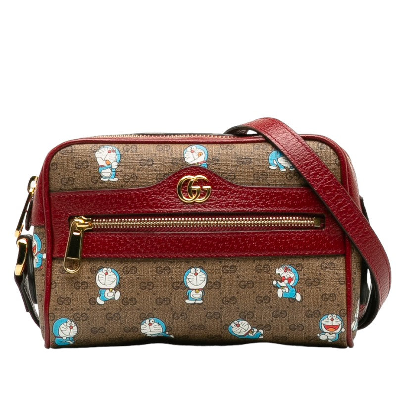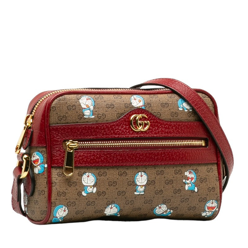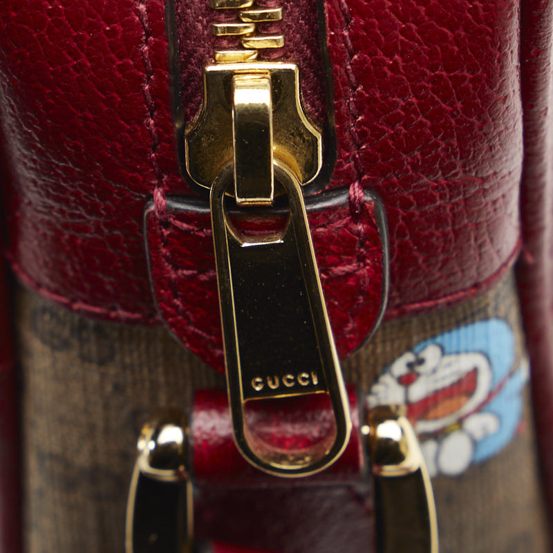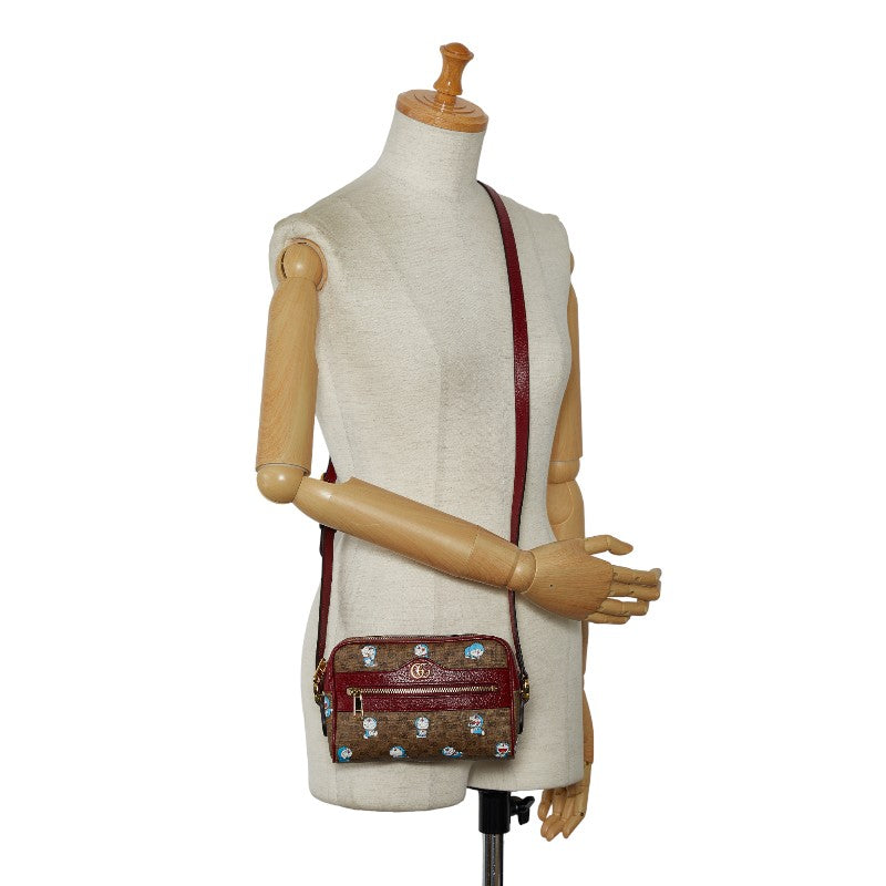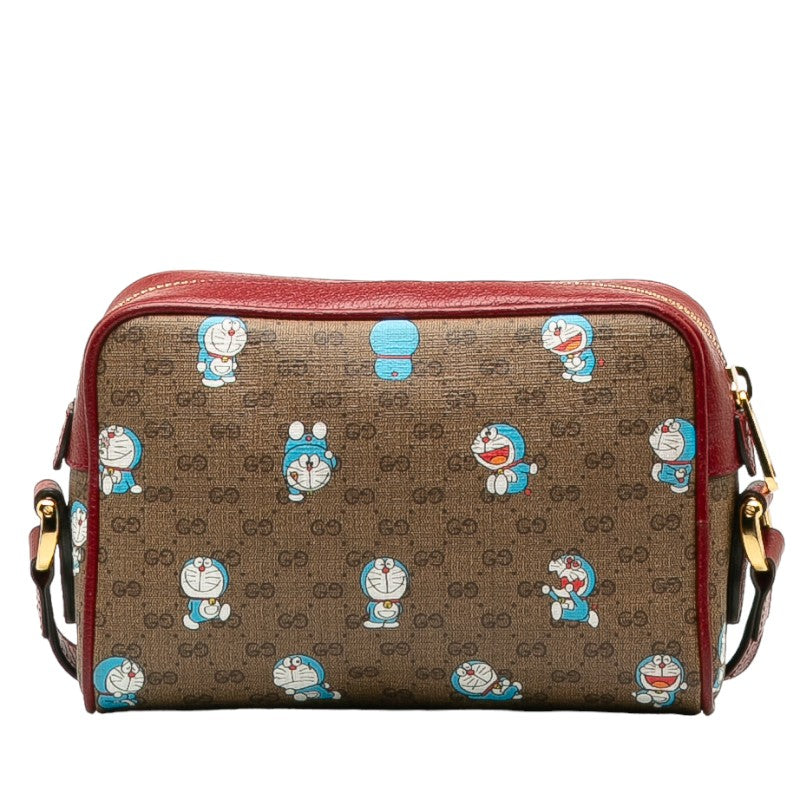 グッチ マイクロ GGスプリーム ドラえもん 斜め掛け ミニ ショルダーバッグ 647784 ブラウン ボルドー PVC レザー レディース GUCCI 【中古】
