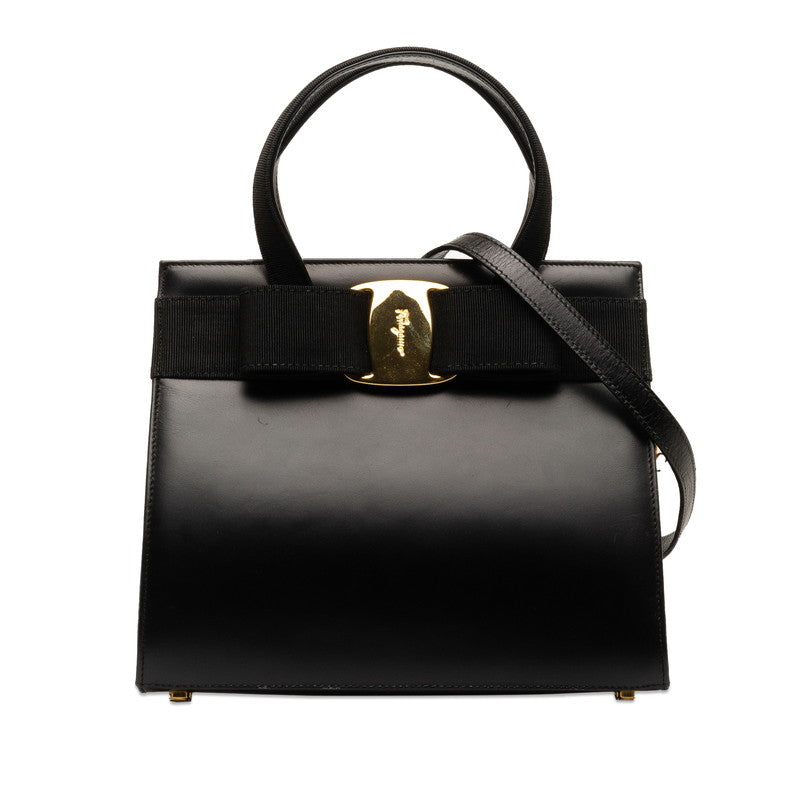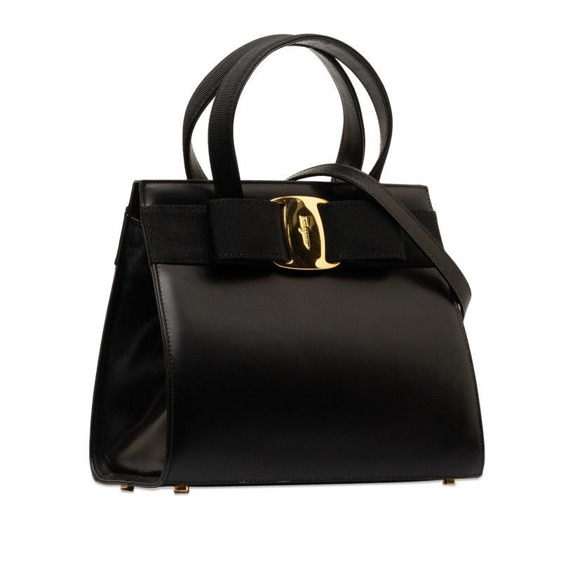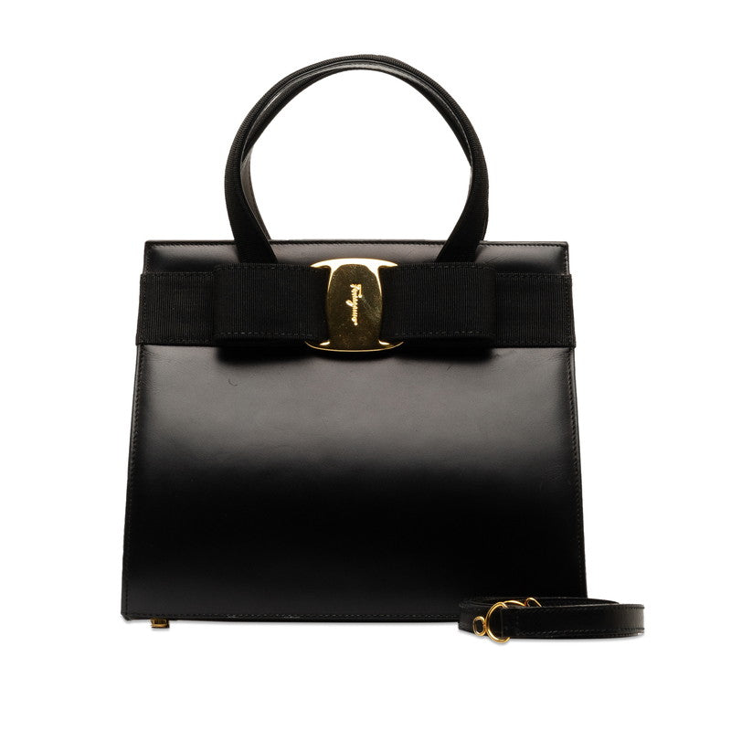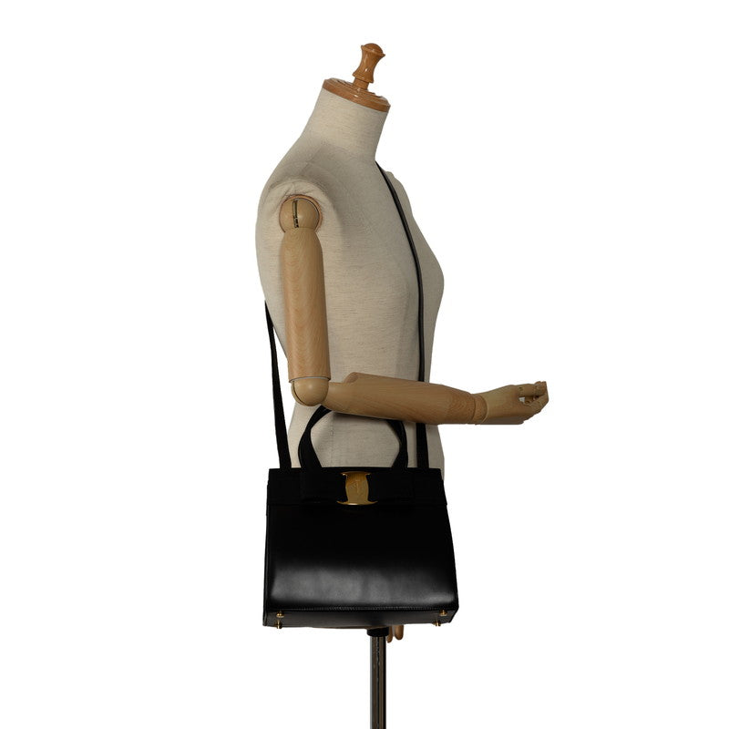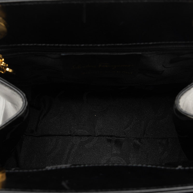 サルヴァトーレフェラガモ ヴァラリボン ハンドバッグ ショルダーバッグ 2WAY BA214178 ブラック ゴールド レザー レディース Salvatore Ferragamo 【中古】