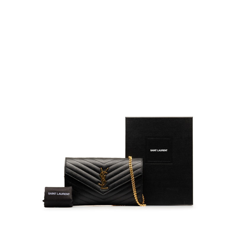 サンローラン モノグラム チェーンウォレット ショルダーバッグ 377828 ブラック ゴールド レザー レディース SAINT LAURENT 【中古】