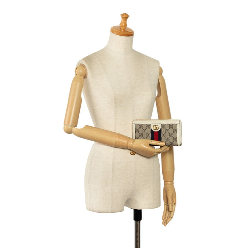 グッチ GGスプリーム GGマーモント オフィディア ラウンドファスナー 長財布 523154 ベージュ ホワイト PVC レザー レディース GUCCI 【中古】