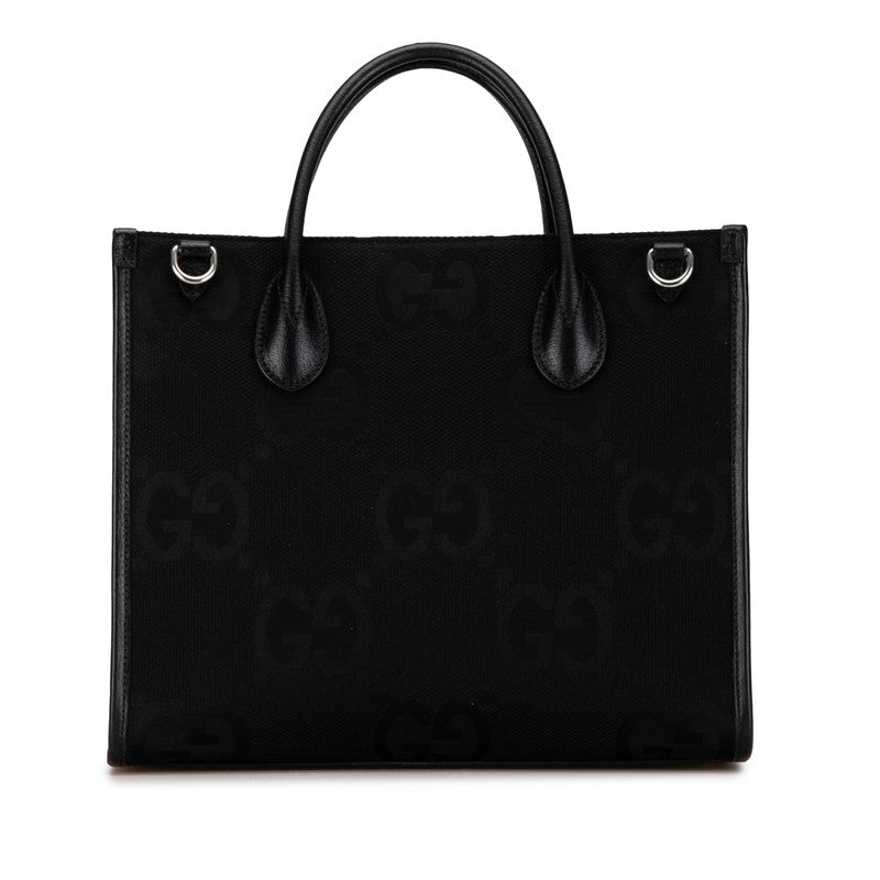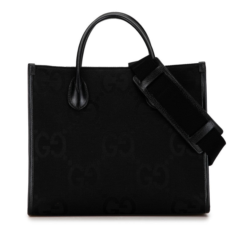 グッチ ジャンボGG トートバッグ ショルダーバッグ 2WAY 680956 ブラック キャンバス レザー レディース GUCCI 【中古】