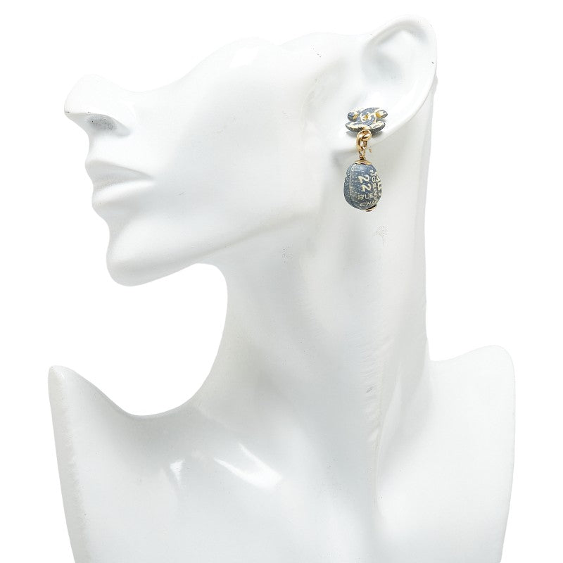 シャネル NO.5 カンボン ココマーク スイングピアス ネイビー ゴールド メッキ レディース CHANEL 【中古】