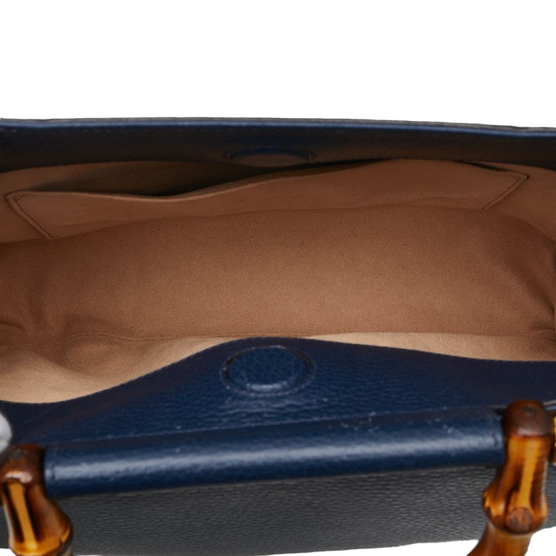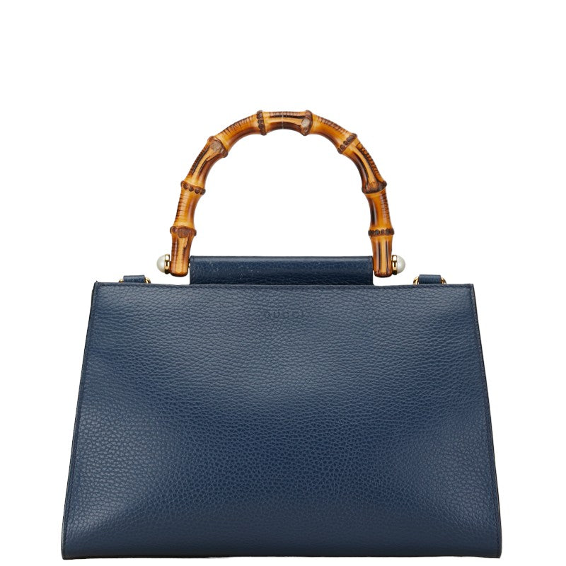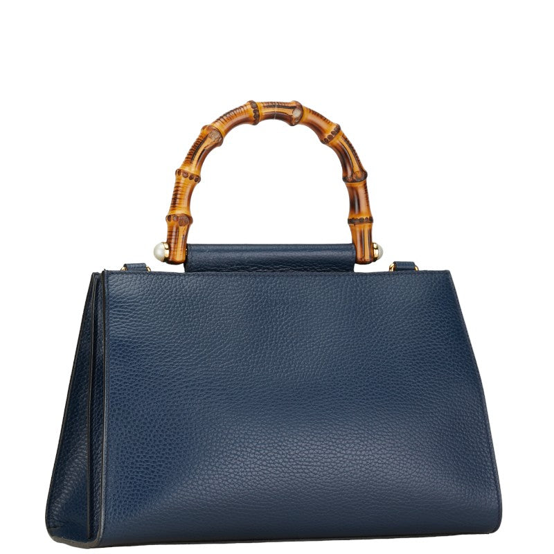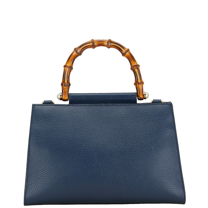 グッチ バンブー ニムフェア ハンドバッグ ショルダーバッグ 2WAY 459076 ネイビー レザー レディース GUCCI 【中古】