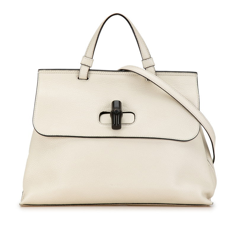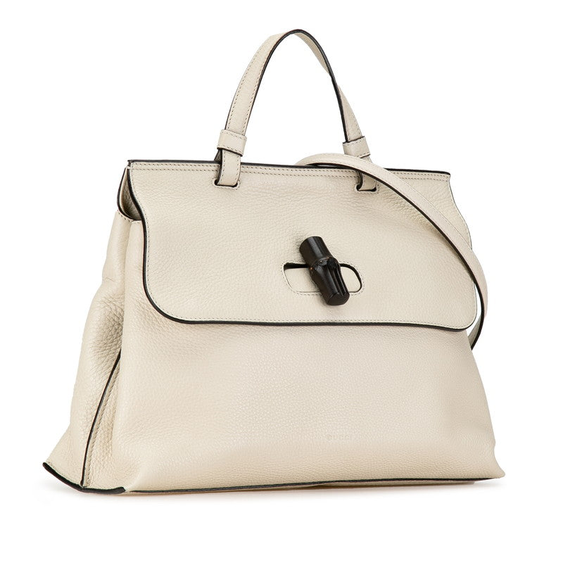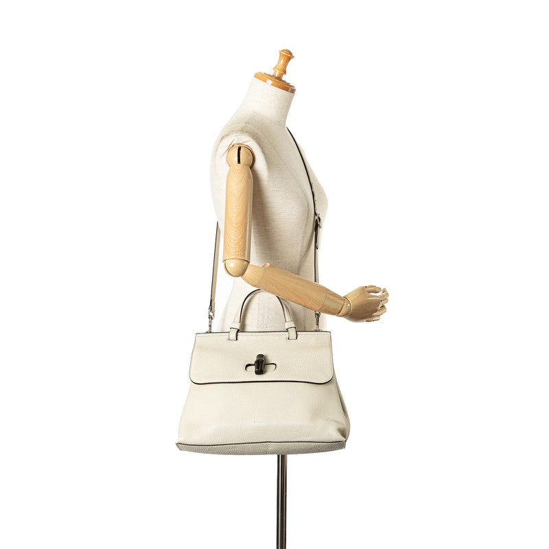 グッチ バンブー デイリー ハンドバッグ ショルダーバッグ 2WAY 392013 ホワイト レザー レディース GUCCI 【中古】
