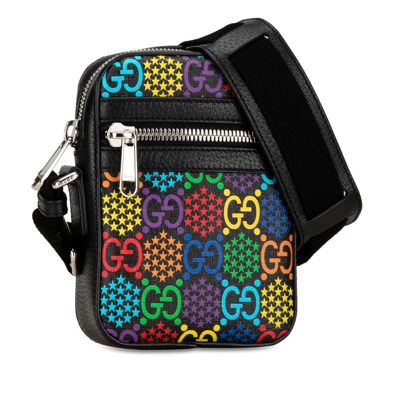 グッチ GGサイケデリック 斜め掛け ショルダーバッグ 598103 ブラック マルチカラー PVC レザー レディース GUCCI 【中古】