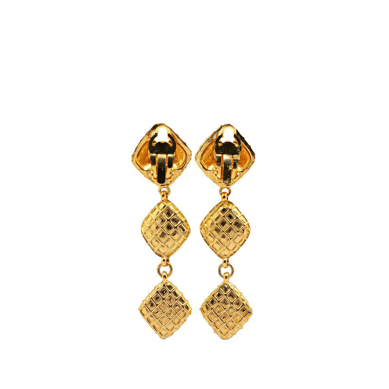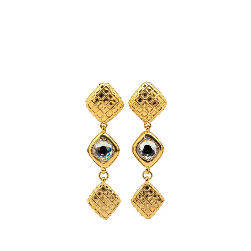 シャネル ひし形 3連 ストーン イヤリング ゴールド メッキ レディース CHANEL 【中古】