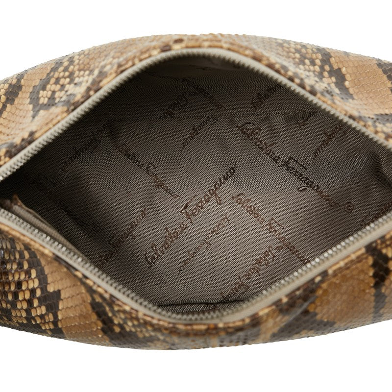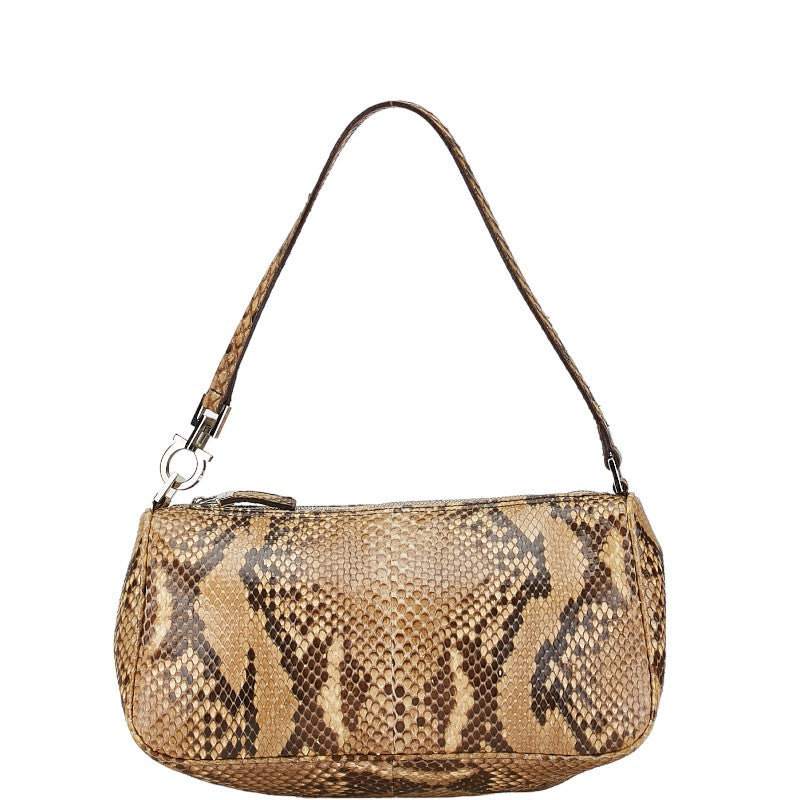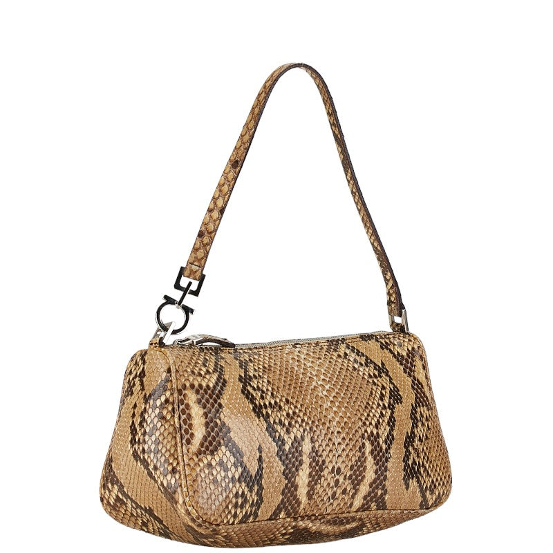 サルヴァトーレフェラガモ ガンチーニ ハンドバッグ EE-213346 ベージュ ブラウン パイソン レディース Salvatore Ferragamo 【中古】