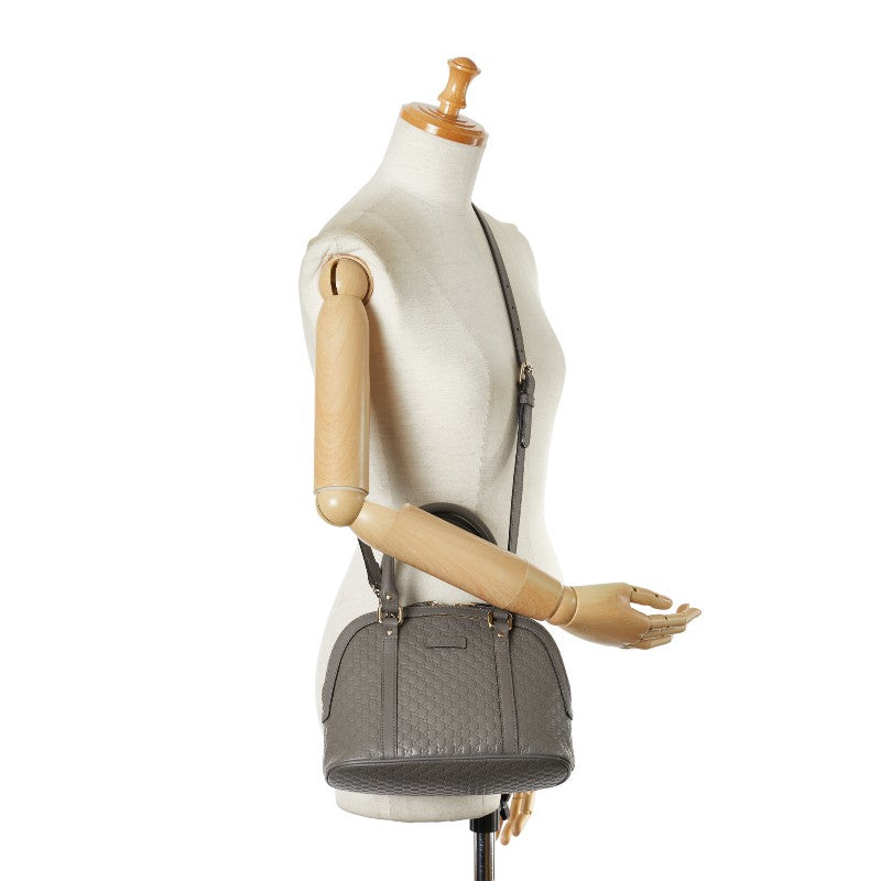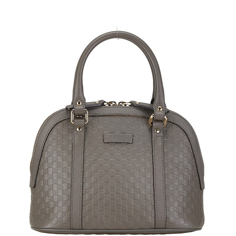グッチ マイクログッチシマ ハンドバッグ ショルダーバッグ 2WAY 449654 グレー レザー レディース GUCCI 【中古】