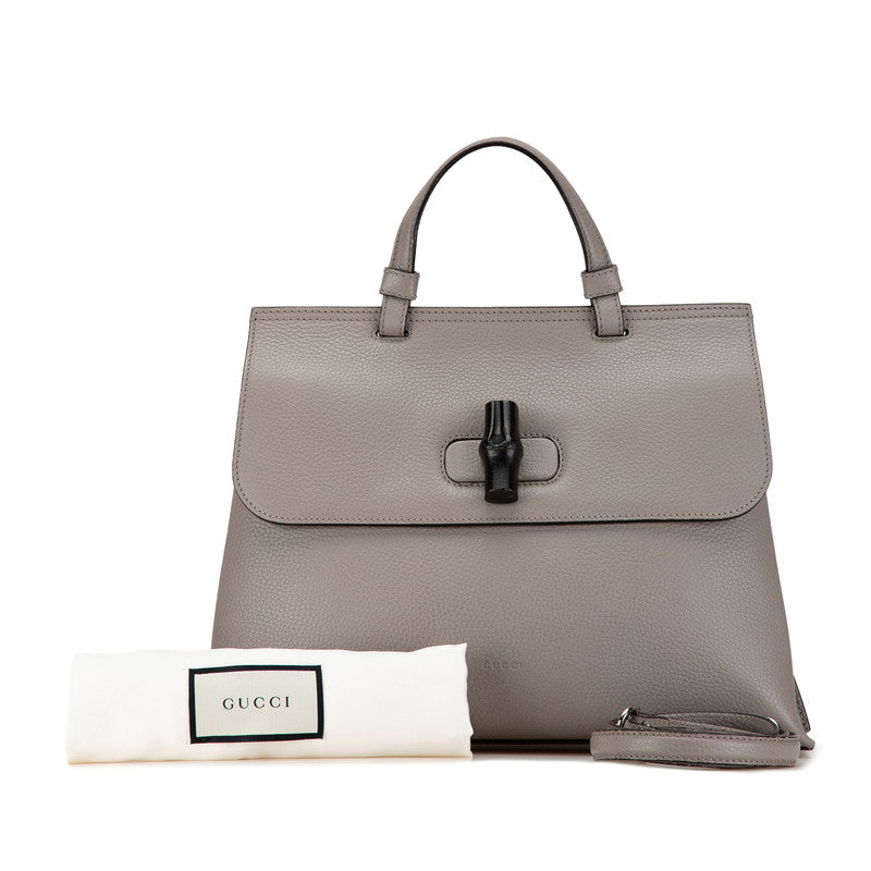 グッチ バンブー ハンドバッグ ショルダーバッグ 2WAY 392013 グレー レザー レディース GUCCI 【中古】