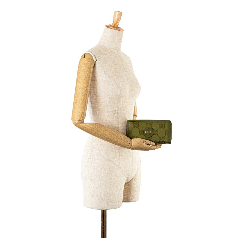 グッチ グッチ オフザグリット ラウンドファスナー 長財布 625576 カーキグリーン ナイロン レザー レディース GUCCI 【中古】