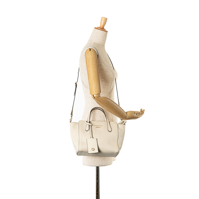 グッチ スウィング ミニ ハンドバッグ ショルダーバッグ 2WAY 368827 ホワイト ベージュ レザー レディース GUCCI 【中古】