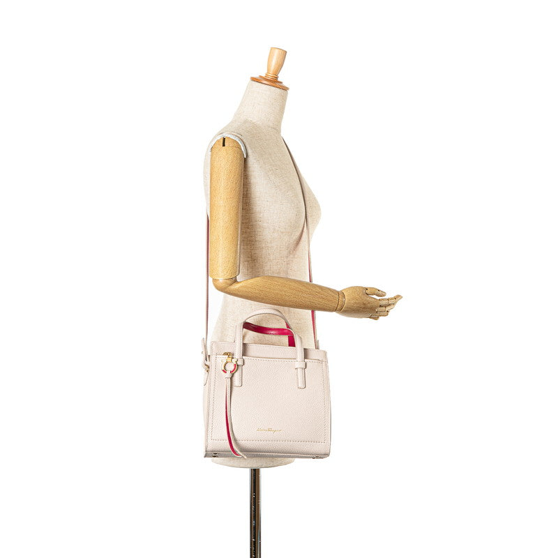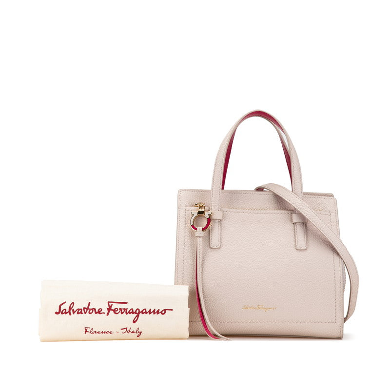 サルヴァトーレフェラガモ ガンチーニ エイミー ハンドバッグ ショルダーバッグ 2WAY EE-21 F478 ベージュ ピンク レザー レディース Salvatore Ferragamo 【中古】