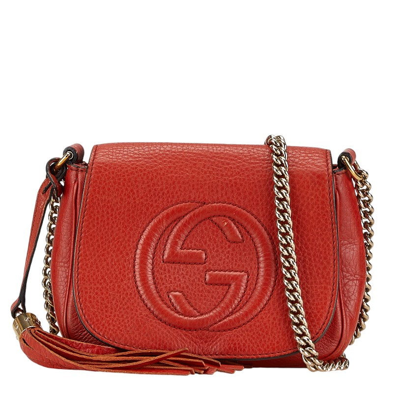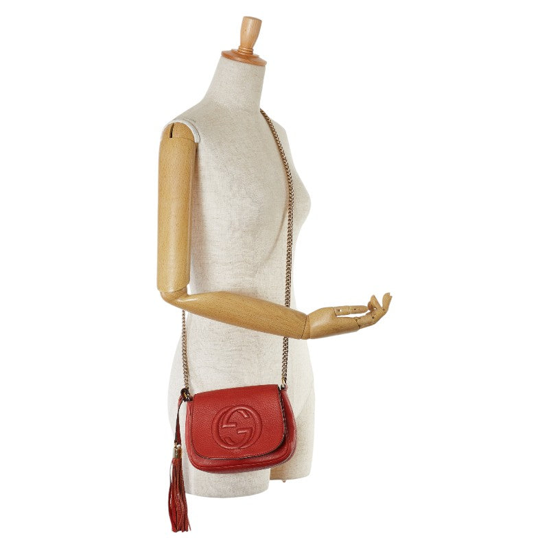 グッチ ソーホー インターロッキングG タッセル ポシェット 斜め掛け チェーン ショルダーバッグ 323190 オレンジ レザー レディース GUCCI 【中古】