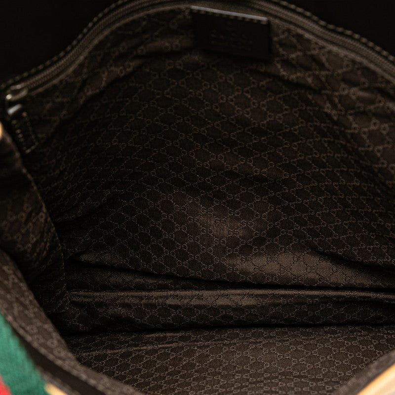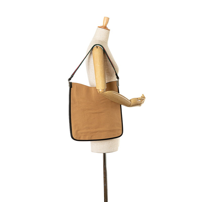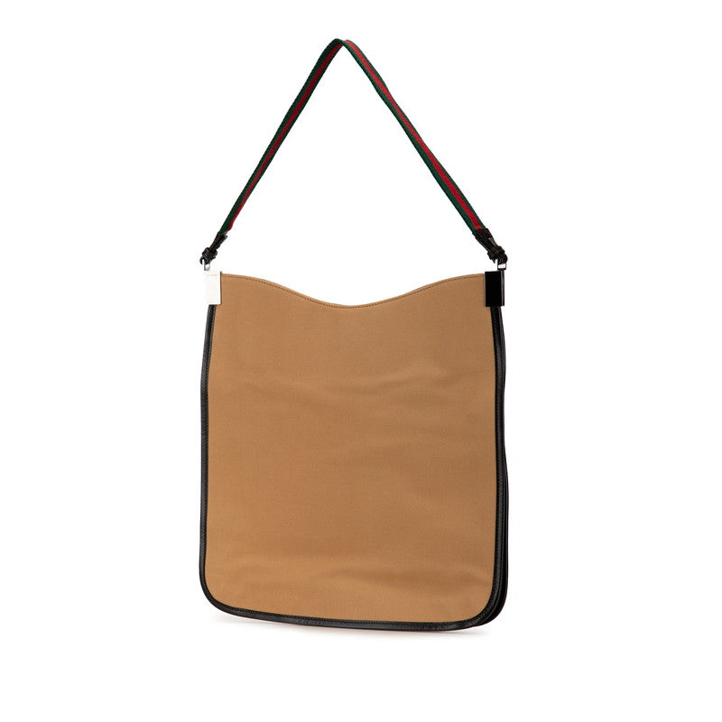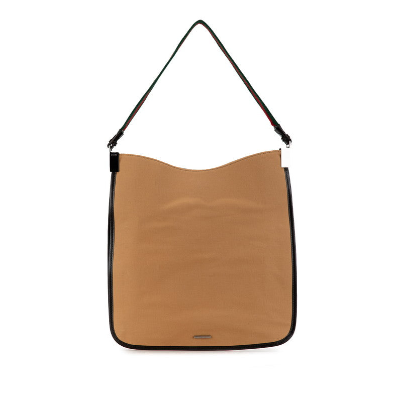 グッチ シェリーライン ロゴプレート トートバッグ ワンショルダーバッグ 001 4306 001998 ベージュ ブラウン キャンバス レザー レディース GUCCI 【中古】