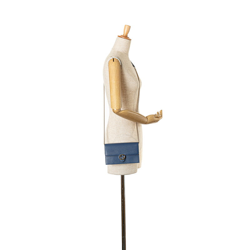 グッチ インターロッキングG 斜め掛け チェーン ショルダーバッグ 510314 ブルー レザー レディース GUCCI 【中古】