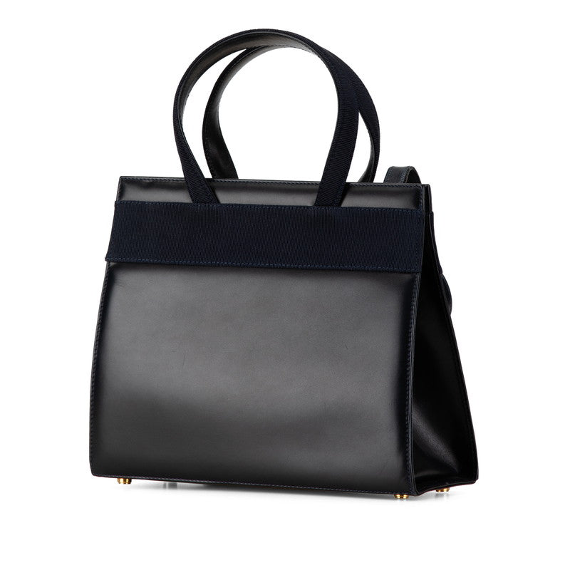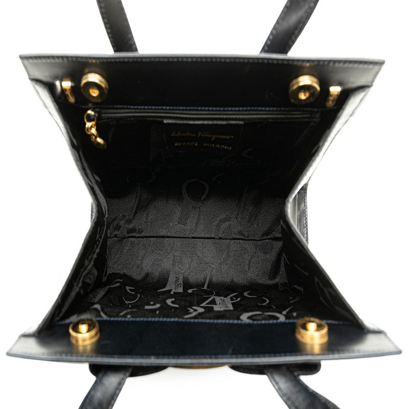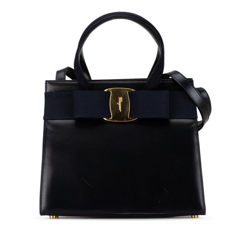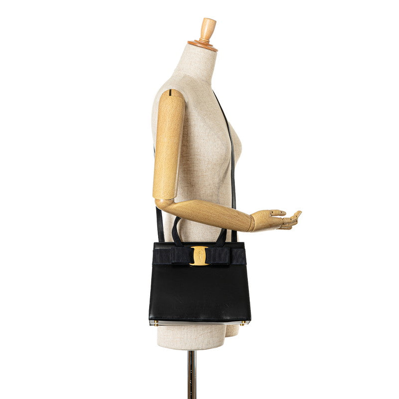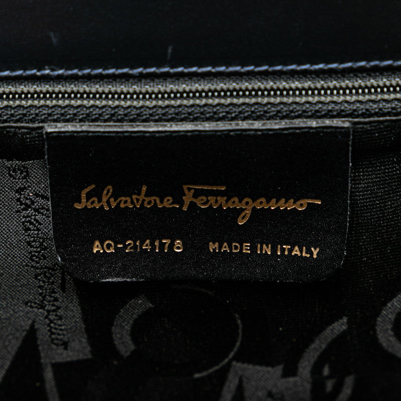 サルヴァトーレフェラガモ ヴァラリボン ハンドバッグ ショルダーバッグ 2WAY AQ-214178 ブラック ネイビー レザー レディース Salvatore Ferragamo 【中古】