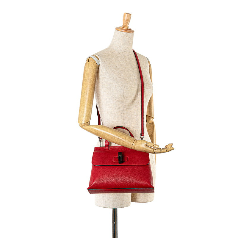 グッチ バンブー デイリー ハンドバッグ ショルダーバッグ 2WAY 370831 レッド レザー レディース GUCCI 【中古】