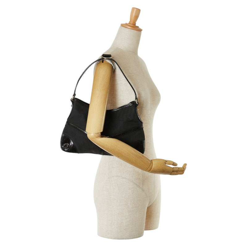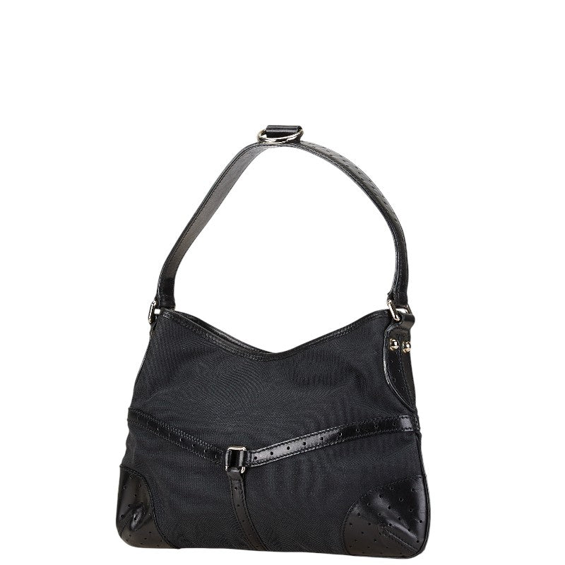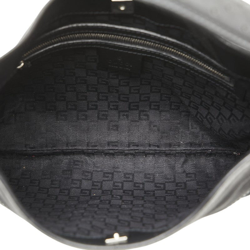グッチ インターロッキングG ワンショルダーバッグ ハンドバッグ 114877 ブラック シルバー キャンバス レザー レディース GUCCI 【中古】
