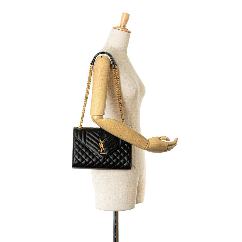 サンローラン サンローランパリ エンベロープ チェーン ショルダーバッグ ハンドバッグ ブラック ゴールド レザー レディース SAINT LAURENT 【中古】