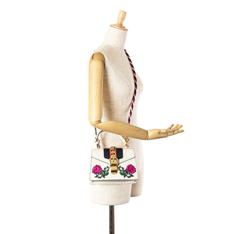 グッチ シルヴィ ローズエンブロイダリー ハンドバッグ ショルダーバッグ 2WAY 470270 ホワイト レザー レディース GUCCI 【中古】