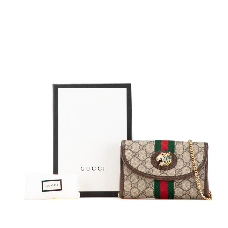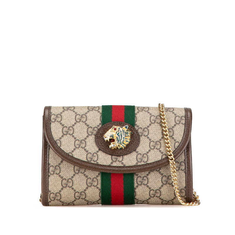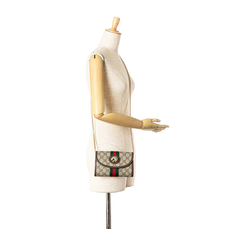 グッチ ラジャ オフィディア ウェブストライプ タイガー 斜め掛け チェーン ミニショルダーバッグ 573797 ベージュ ブラウン マルチカラー PVC レザー レディース GUCCI 【中古】