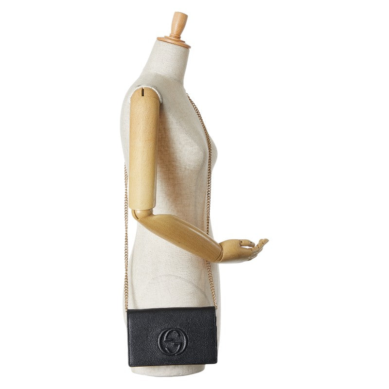 グッチ インターロッキングG ソーホー チェーン ウォレット 長財布 598211 ブラック レザー レディース GUCCI 【中古】