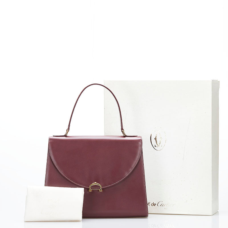 カルティエ マストライン ハンドバッグ ボルドー レザー レディース CARTIER 【中古】