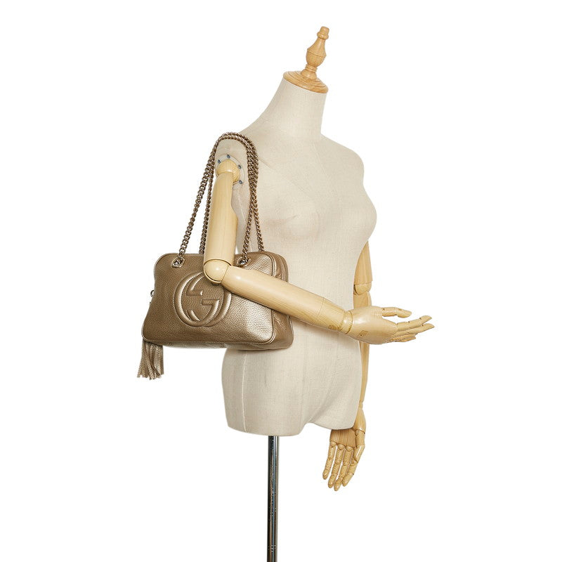 グッチ ソーホー フリンジ チェーン ショルダーバッグ 308983 ゴールド レザー レディース GUCCI 【中古】