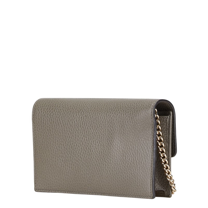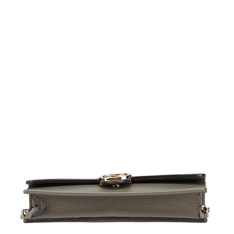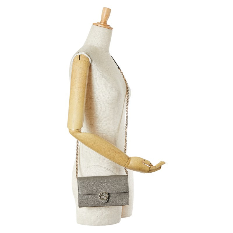 グッチ インターロッキングG 斜め掛け チェーン ショルダバッグ ウォレット 510314 グレー レザー レディース GUCCI 【中古】