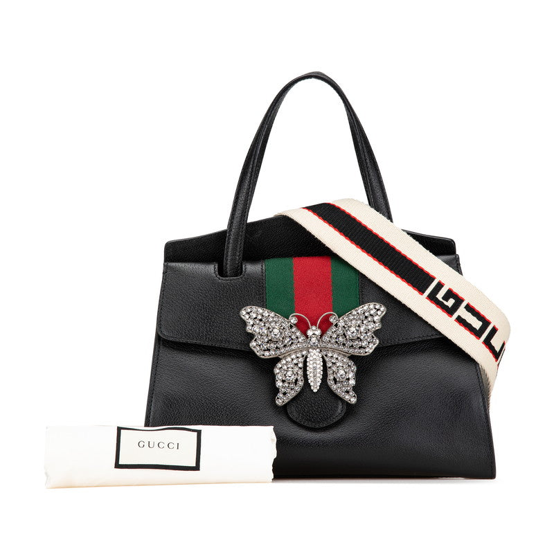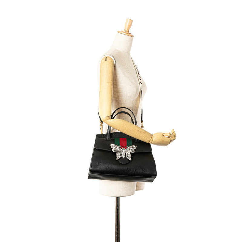 グッチ オフィディア トーテム バタフライ ビジュー ハンドバッグ ショルダーバッグ 2WAY 505342 ブラック レザー レディース GUCCI 【中古】