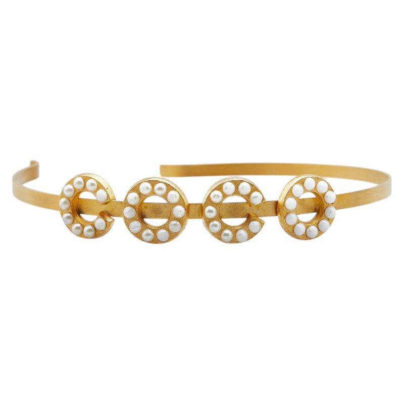 シャネル COCO カチューシャ ゴールド ホワイト メッキ フェイクパール レディース CHANEL 【中古】