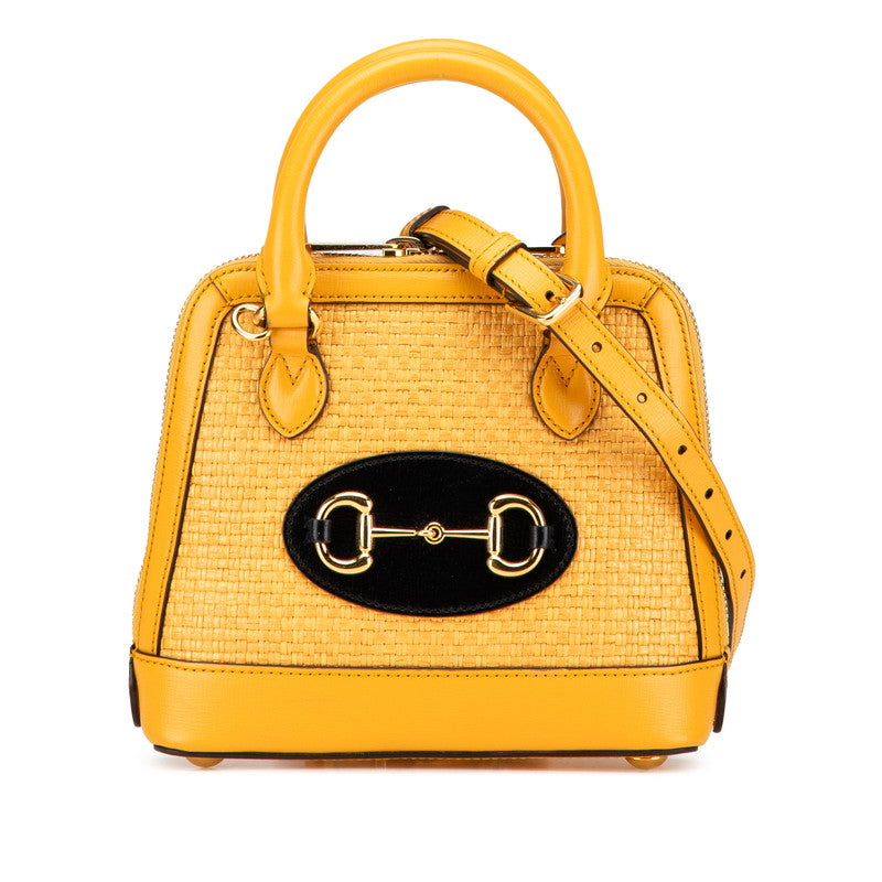 グッチ ミニ トップハンドル ホースビット ハンドバッグ ショルダーバッグ 2WAY 640716 イエロー ラフィア レザー レディース GUCCI 【中古】