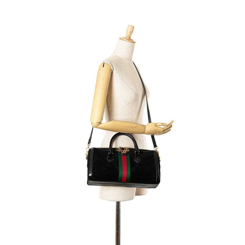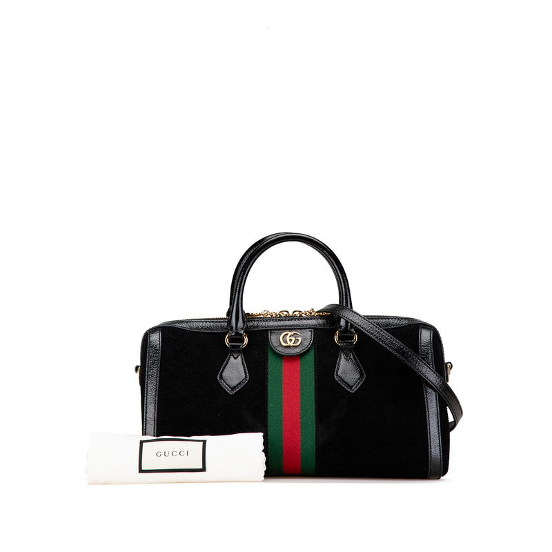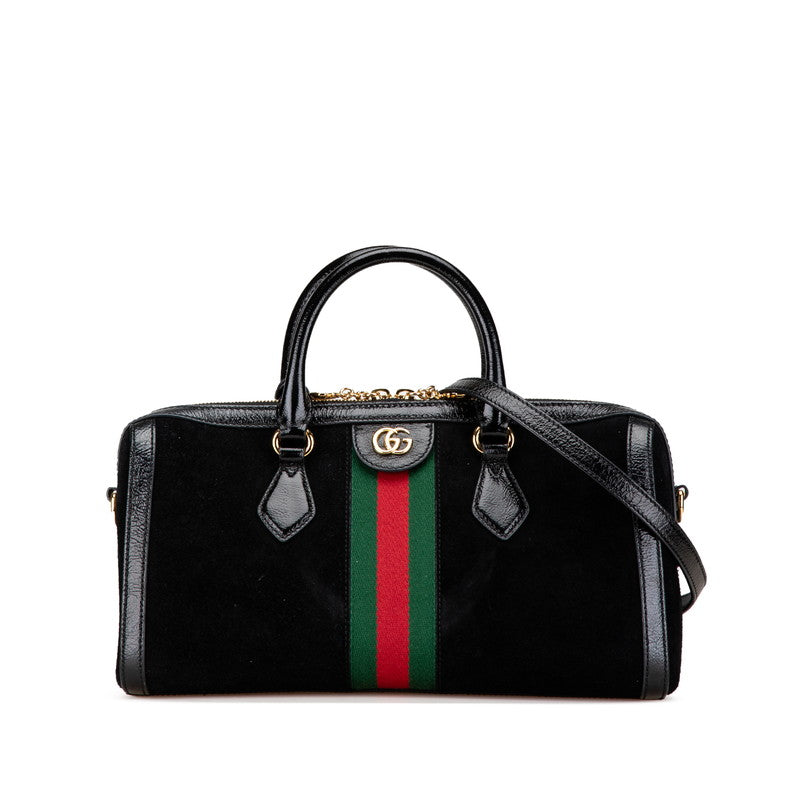 グッチ シェリーライン オフィディア GGミディアム ハンドバッグ ショルダーバッグ 2WAY 524532 ブラック パテントレザー スエード レディース GUCCI 【中古】