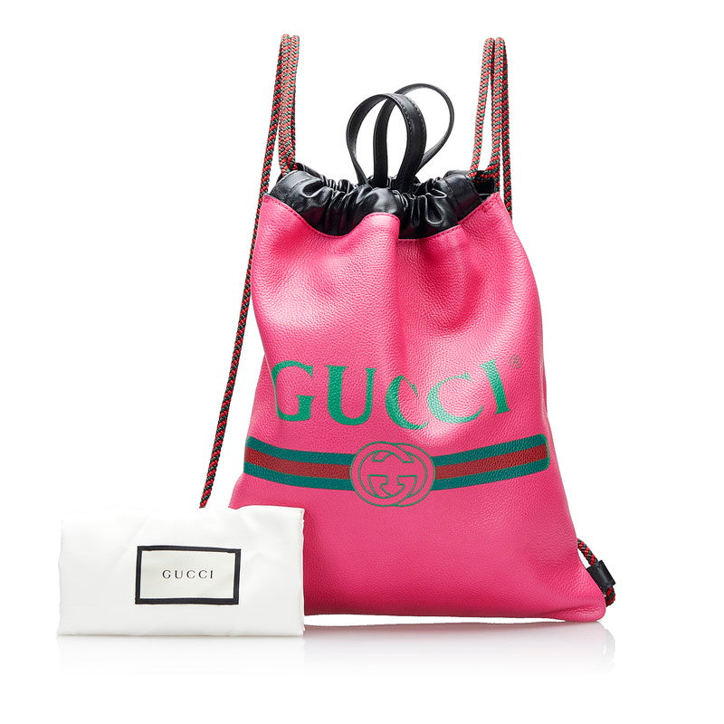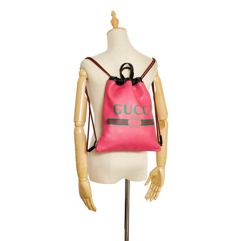 グッチ ドローストリング ミニ ロゴ ナップサック リュック 523586 ピンク レザー レディース GUCCI 【中古】