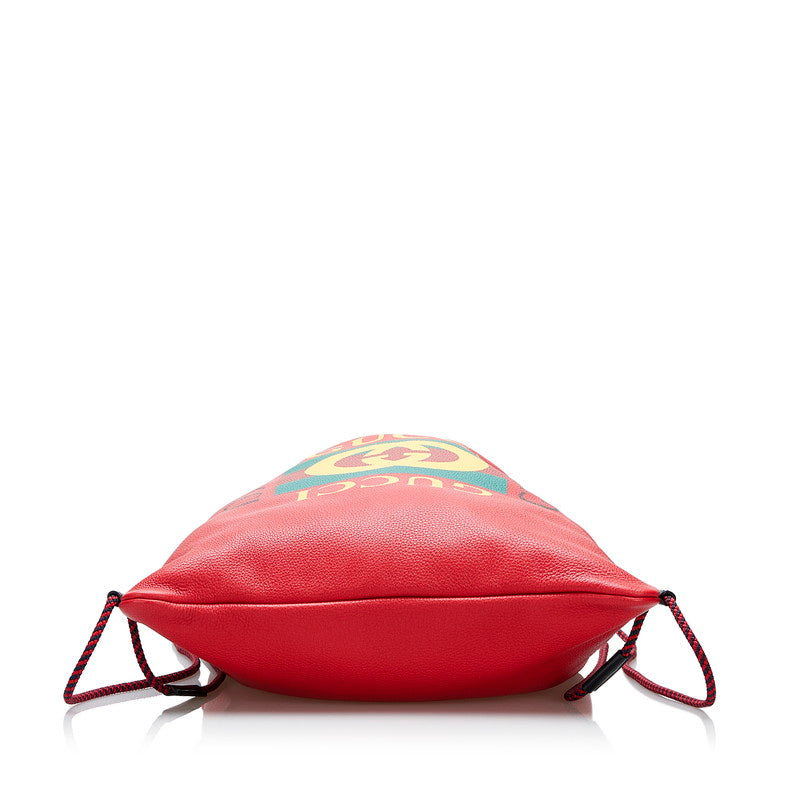 グッチ ドローストリング ロゴ ナップサック リュックサック 516639 レッド レザー レディース GUCCI 【中古】