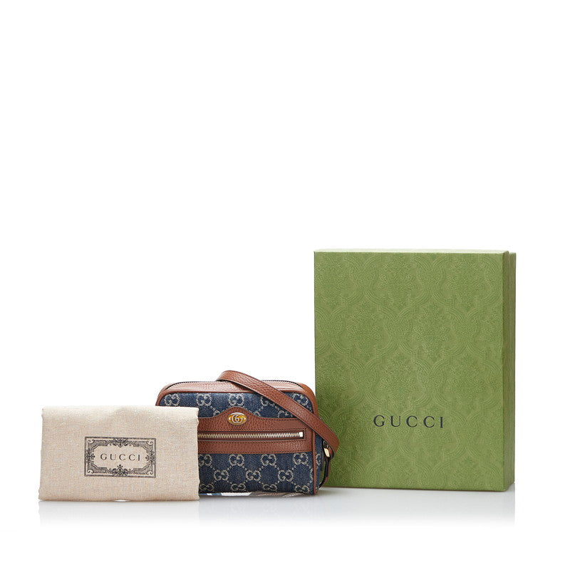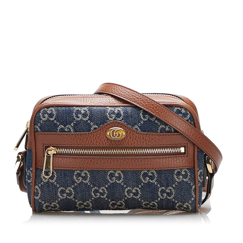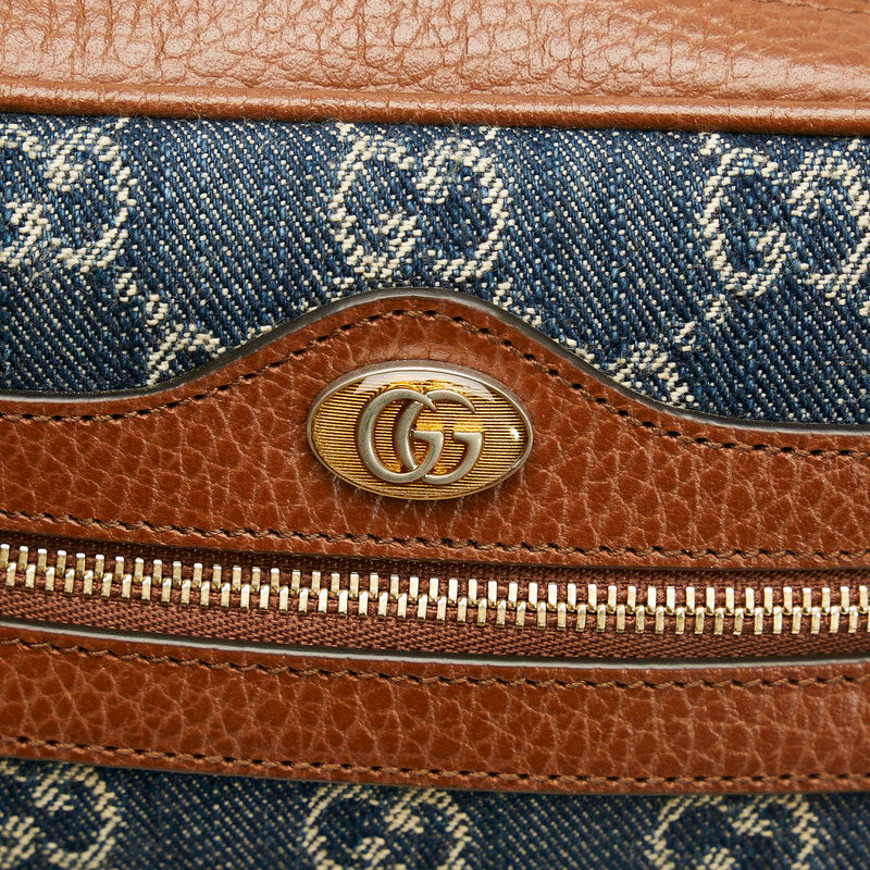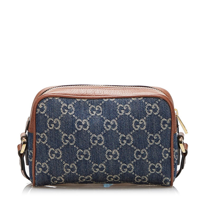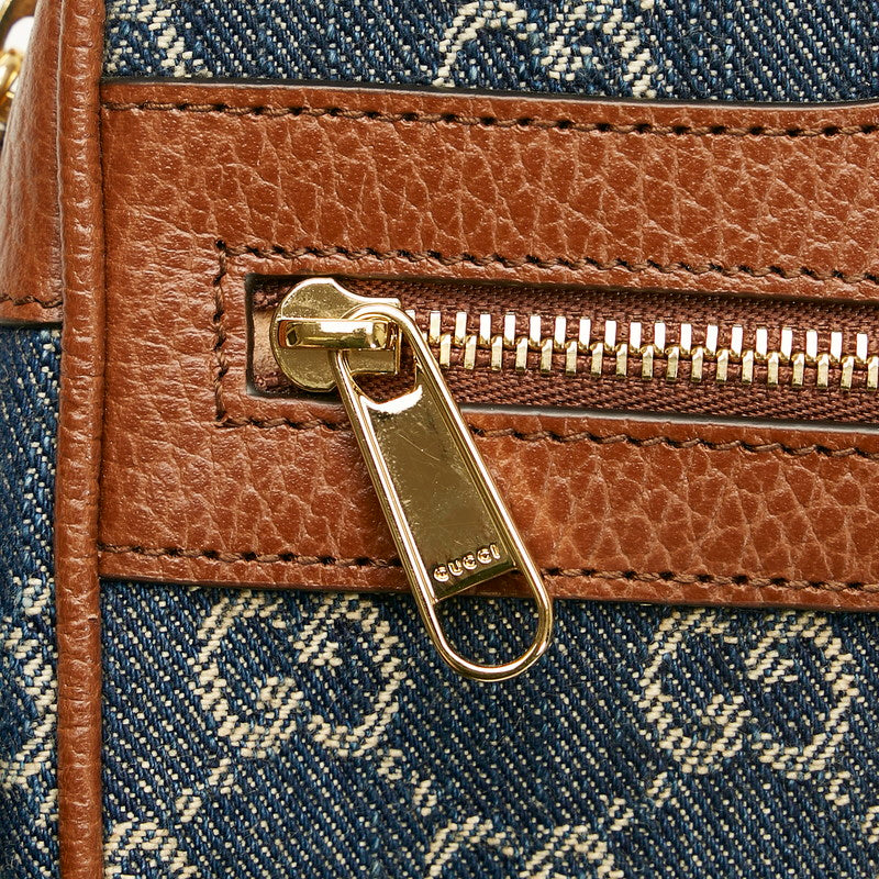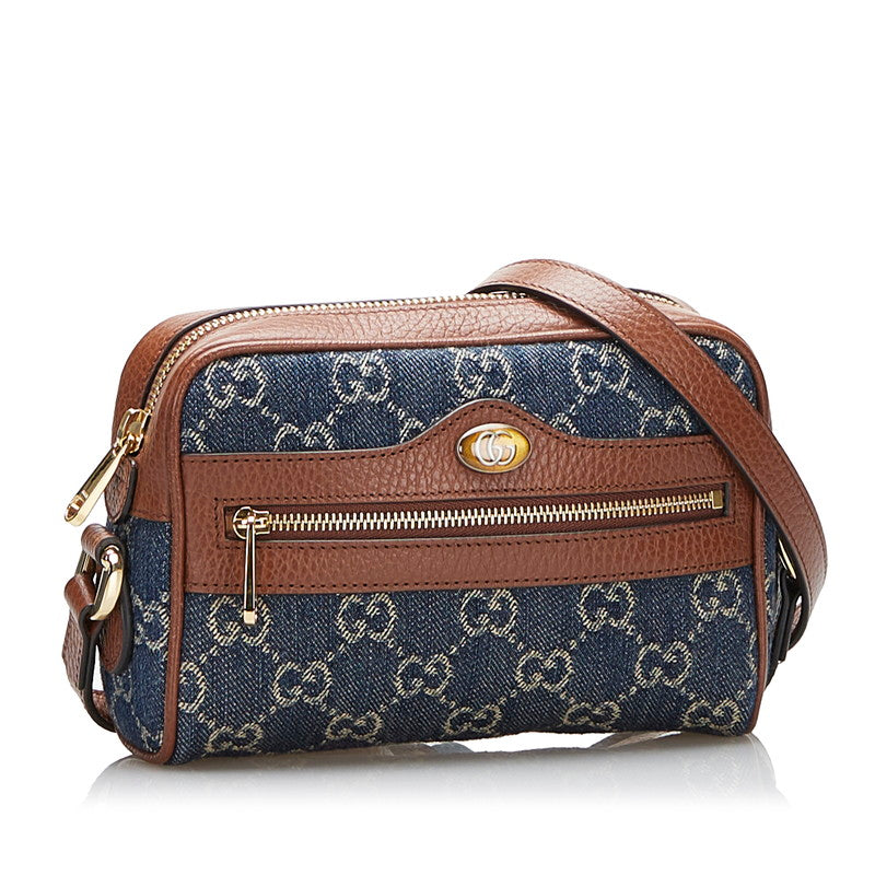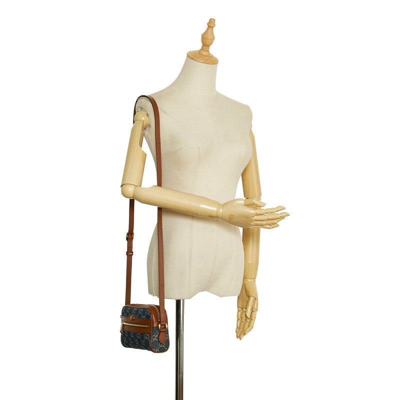 グッチ GGジャガード オフディア 斜め掛け ショルダーバッグ 517350 ブルー ブラウン レザー デニム レディース GUCCI 【中古】