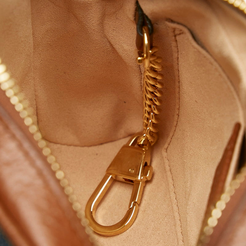 外側⇒若干の型崩れ・色あせ サイド⇒色あせ、レザーに僅かなスレ・糸ほつれ 底面⇒色あせ ショルダー⇒ヨレ・金具跡、付け根の耳に僅かな糸ほつれ、コバスレ、ベルトの穴に僅かな亀裂 金具⇒小キズ・メッキはがれ 内側⇒色あせ |