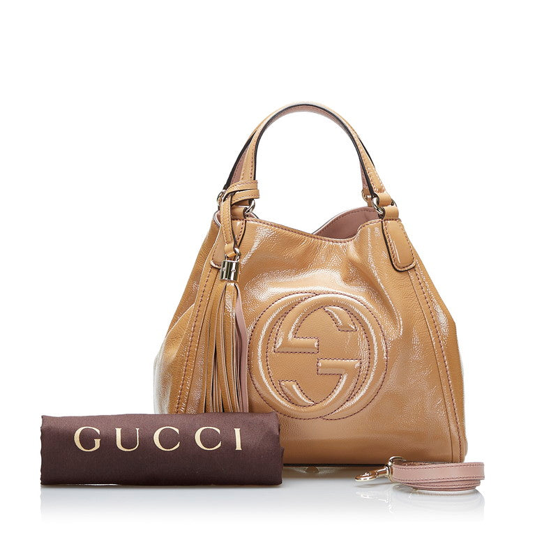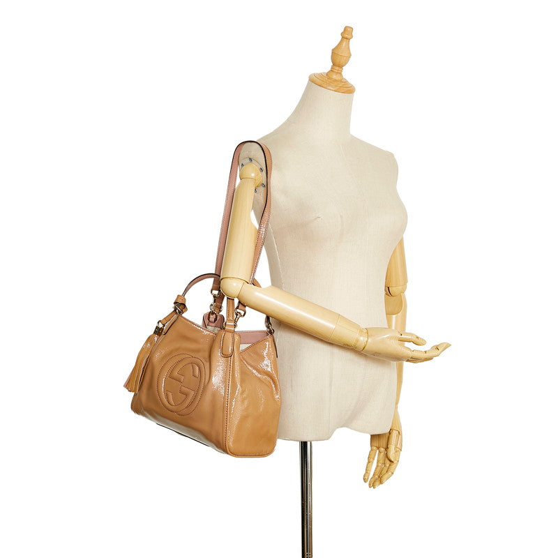 グッチ インターロッキングG ソーホー タッセル ハンドバッグ ショルダーバッグ 2WAY 336751 ブラウン パテントレザー レディース GUCCI 【中古】