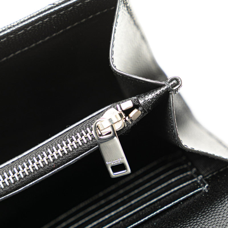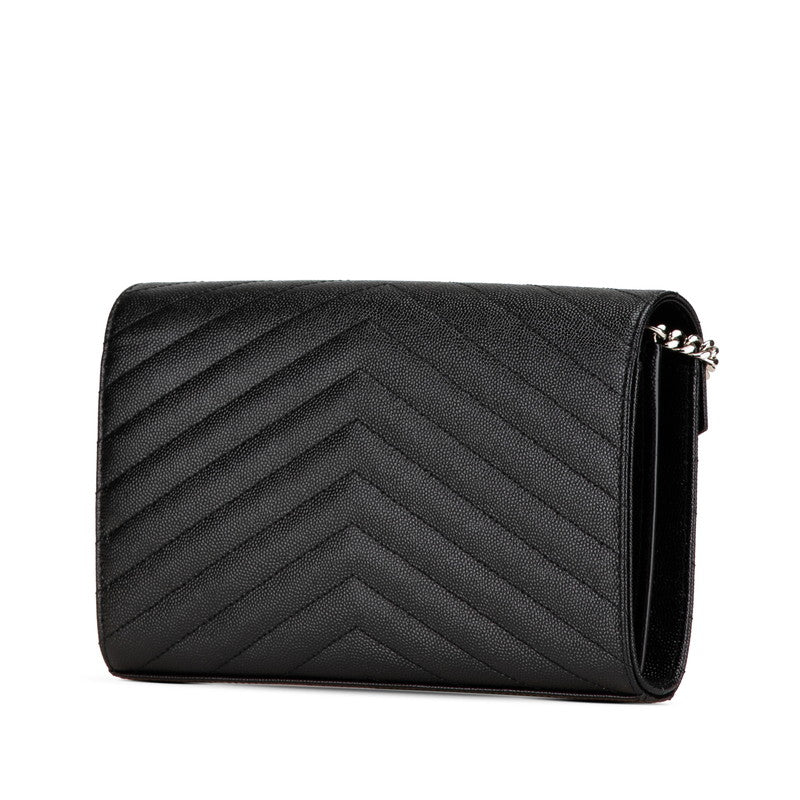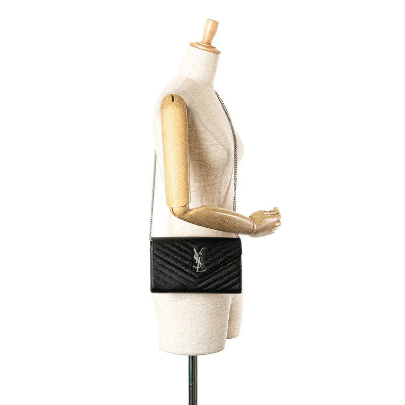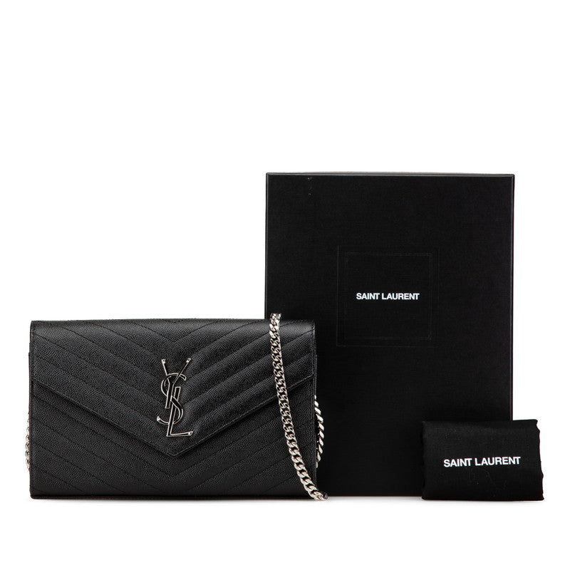 サンローラン YSLロゴ カサンドラ チェーン ショルダーウォレットバッグ ブラック シルバー レザー レディース SAINT LAURENT 【中古】