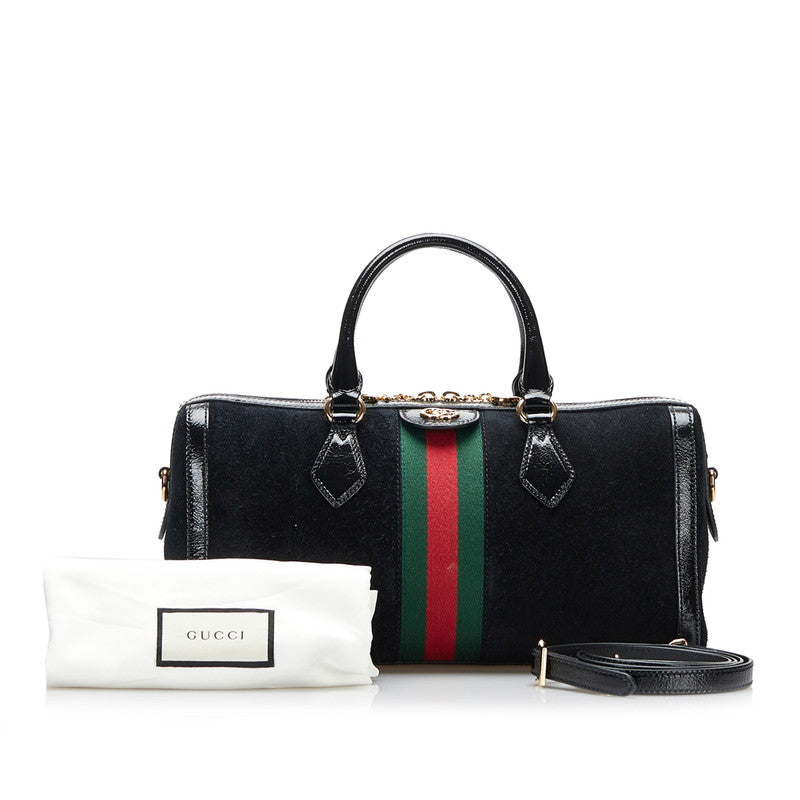 グッチ オフィディア GG シェリーライン ハンドバッグ ショルダーバッグ 2WAY 524532 ブラック スウェード パテントレザー レディース GUCCI 【中古】