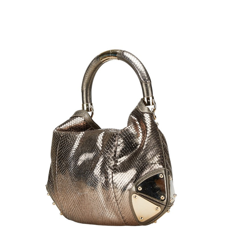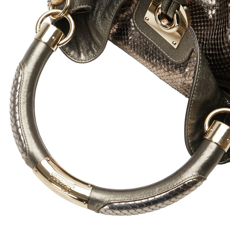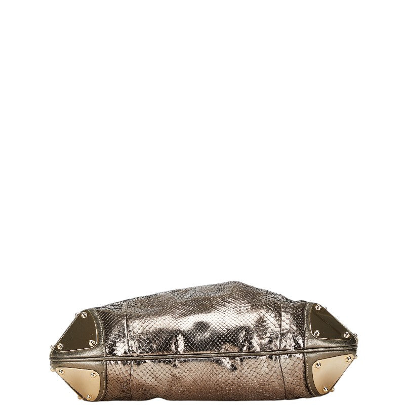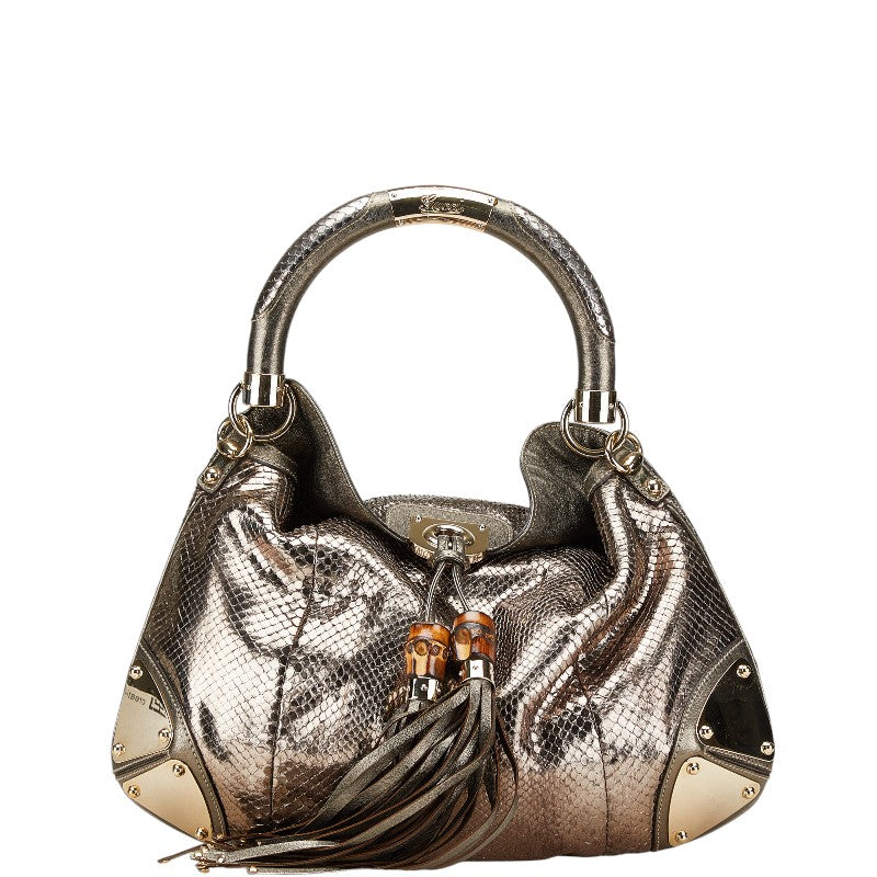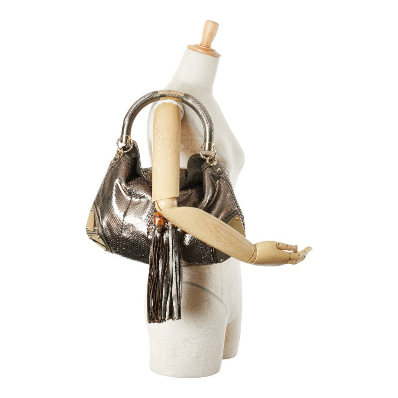 グッチ バンブー インディー リザード型押し ハンドバッグ ワンショルダーバッグ 177139 カーキ ゴールド レザー レディース GUCCI 【中古】