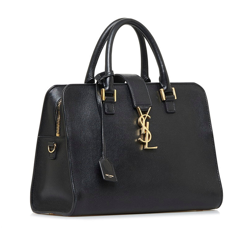 サンローラン YSLロゴ スモールカバス ハンドバッグ ショルダーバッグ 2WAY 357395 ブラック ゴールド レザー レディース SAINT LAURENT 【中古】
