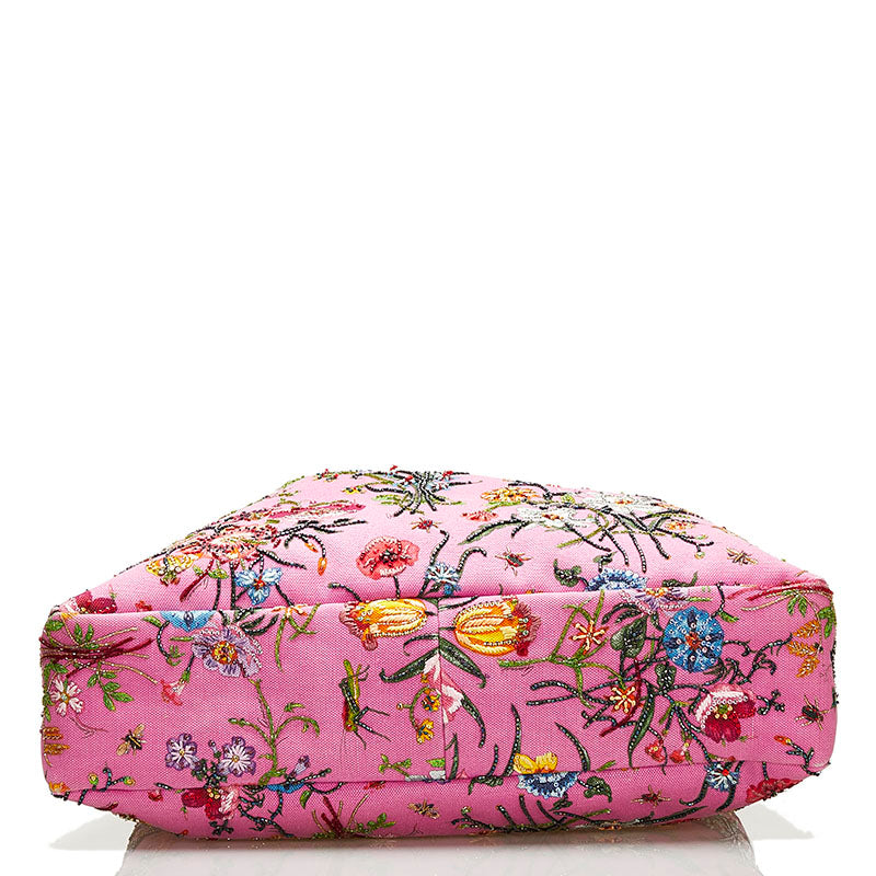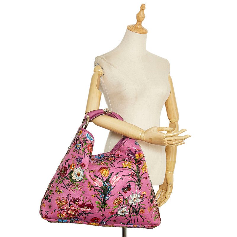 グッチ ホースビット フローラ ビーズ ハンドバッグ トートバッグ 117376 ピンク キャンバス レザー レディース GUCCI 【中古】