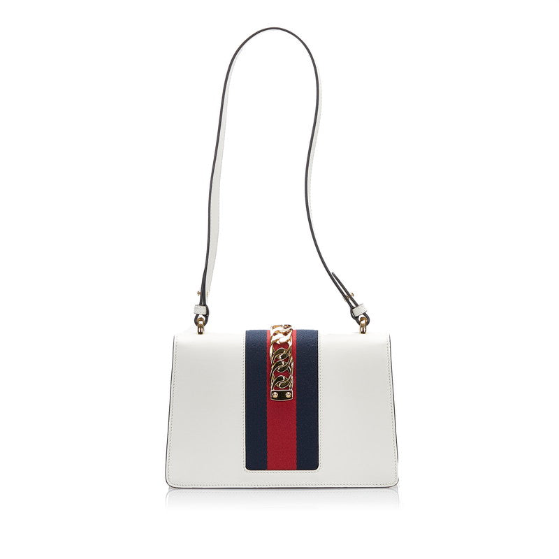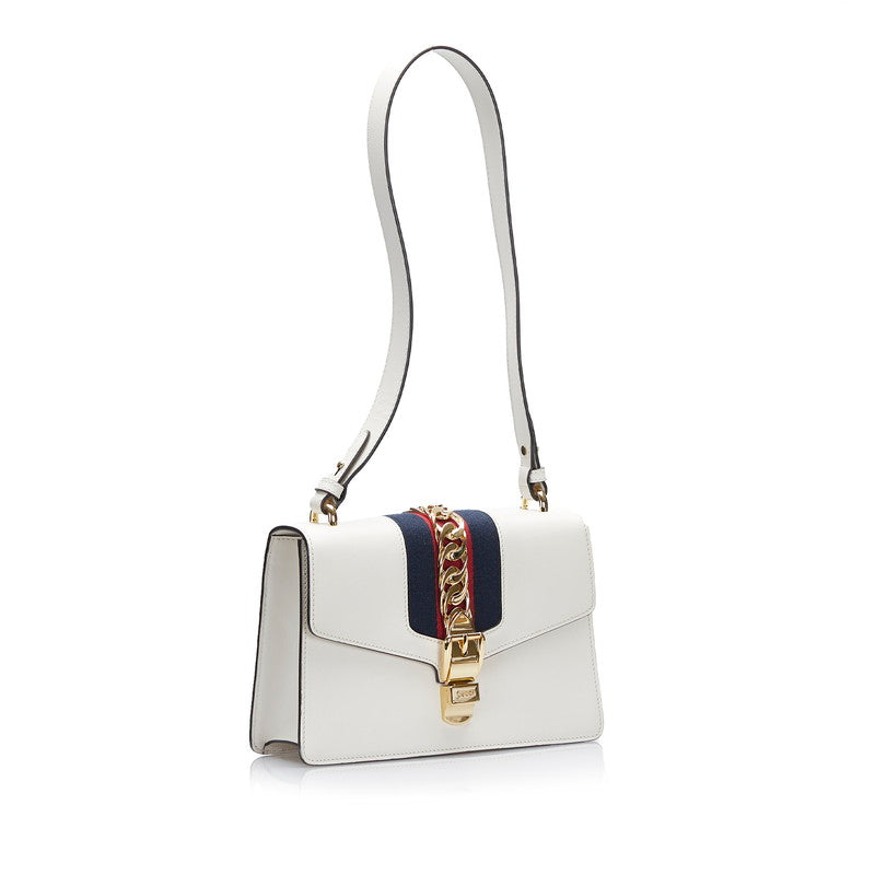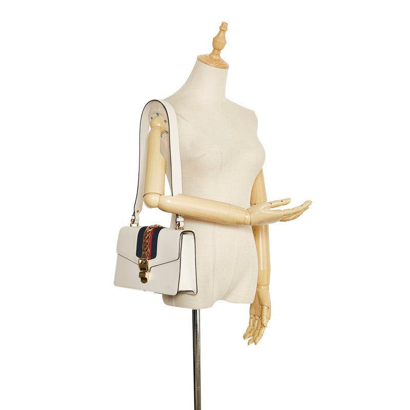 グッチ シェリーライン シルヴィ スモール ショルダーバッグ 421882 アイボリー ホワイト レザー キャンバス レディース GUCCI 【中古】