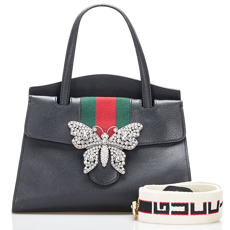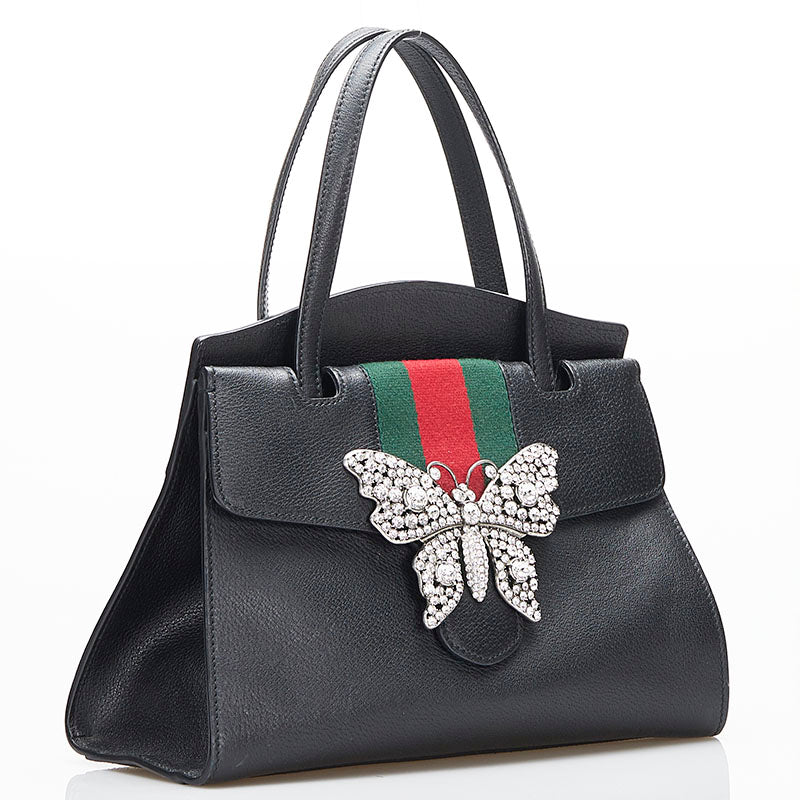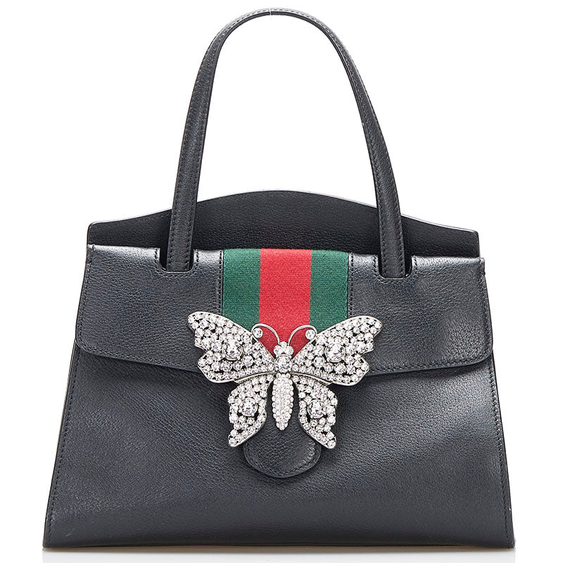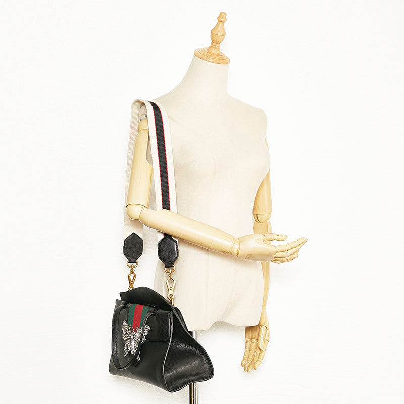 グッチ トーテム バタフライ ビジュー ラインストーン ハンドバッグ ショルダーバッグ 2WAY 505342 ブラック レザー レディース GUCCI 【中古】