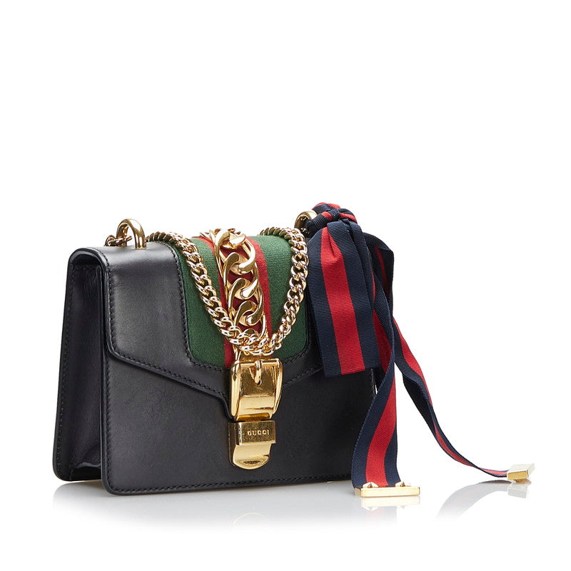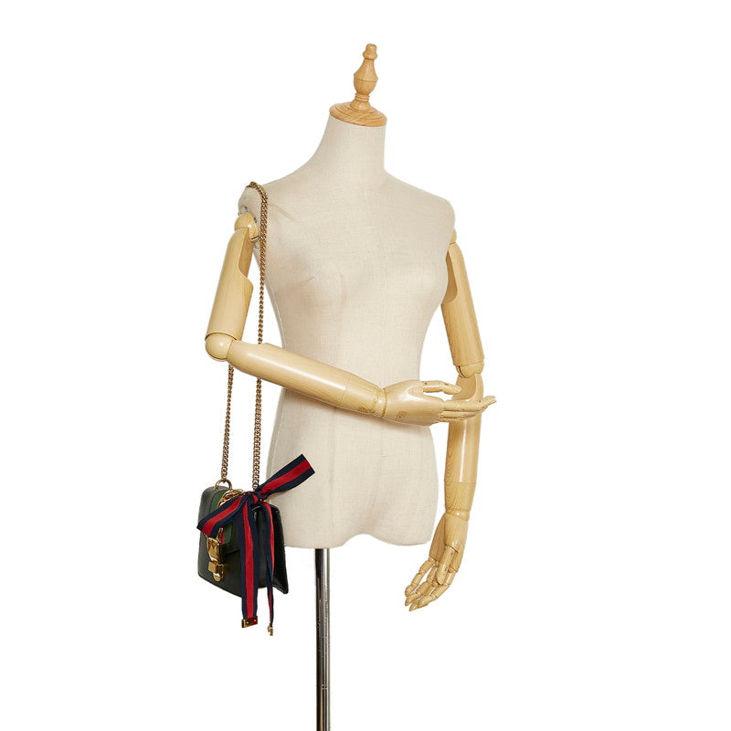 グッチ シェリーライン シルヴィ スモール 斜め掛け チェーン ショルダーバッグ 431666 ブラック レザー レディース GUCCI 【中古】