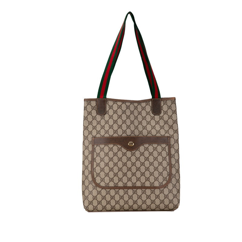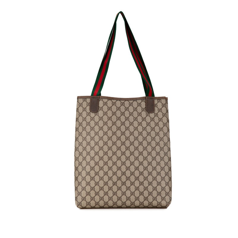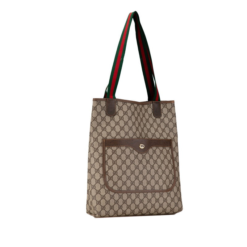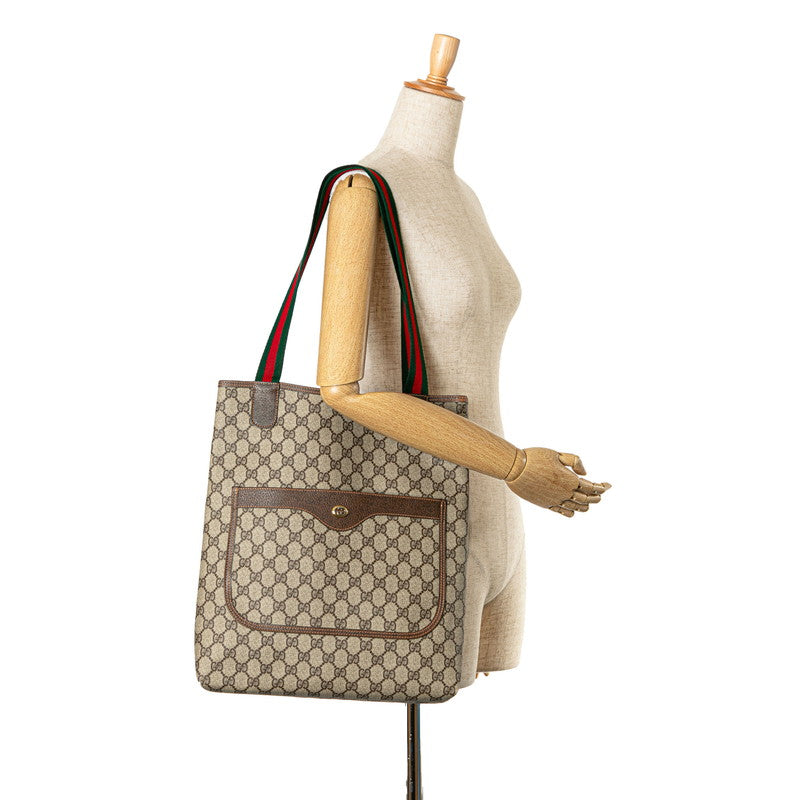 グッチ オールドグッチ GGスプリーム シェリーライン トートバッグ ショルダーバッグ 89 02 003 ベージュ ブラウン PVC レザー レディース GUCCI 【中古】