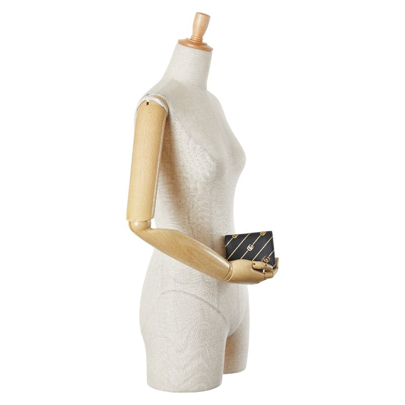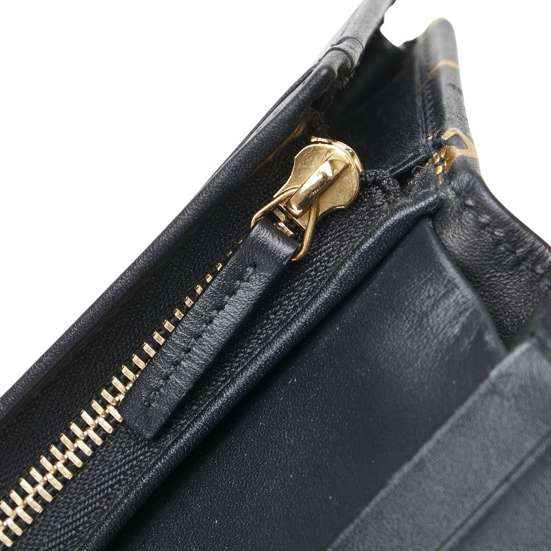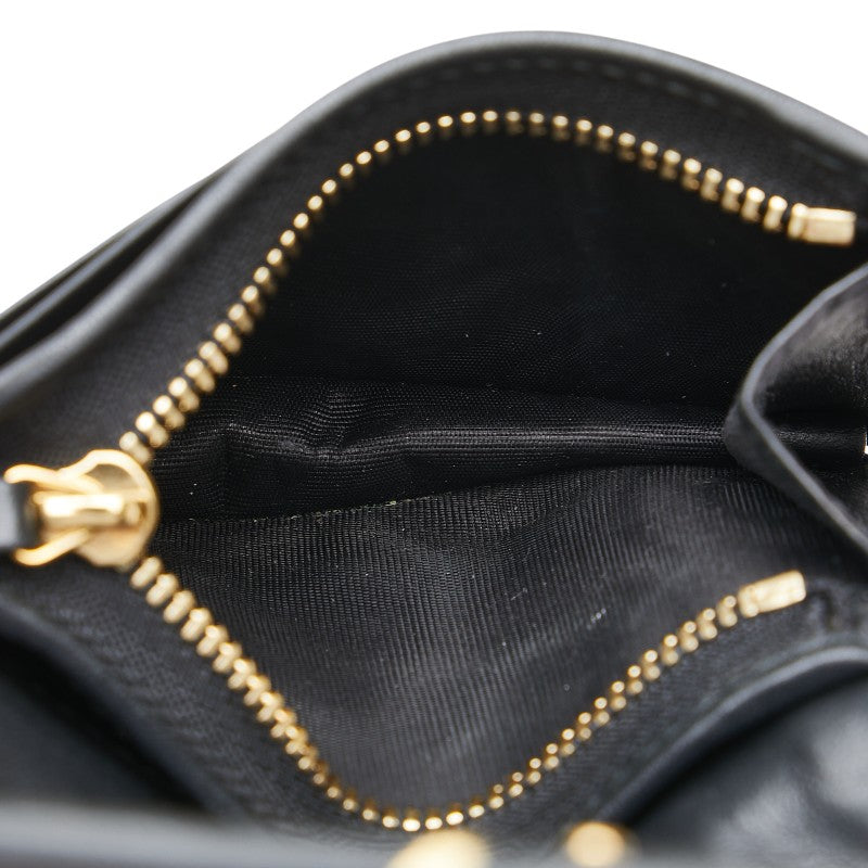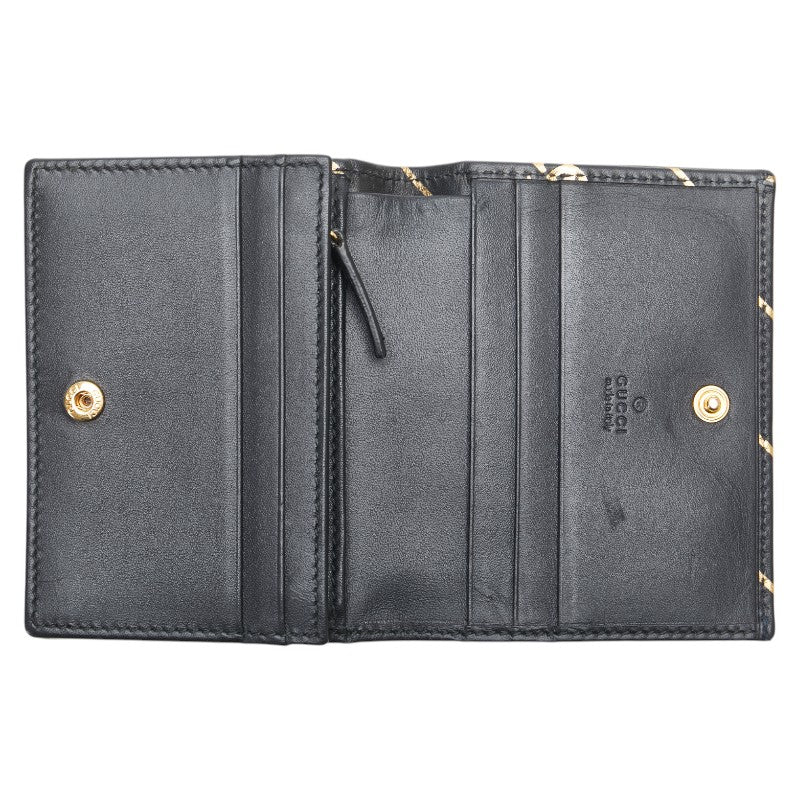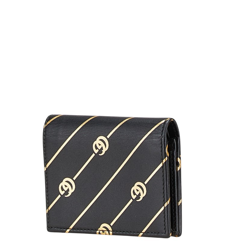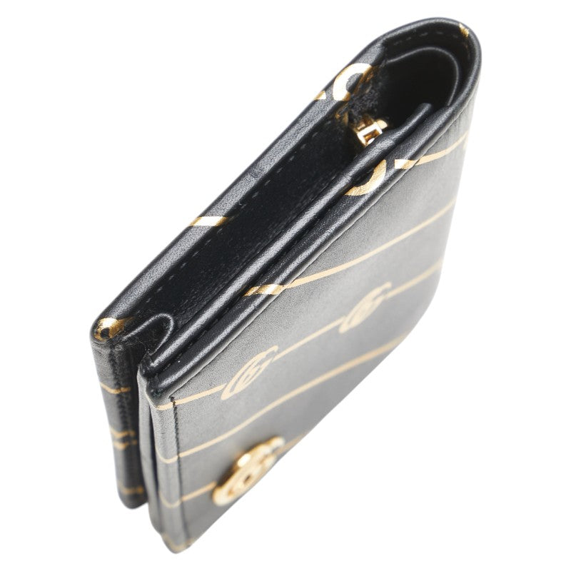 グッチ 二つ折り財布 コンパクトウォレット 548071 ブラック ゴールド レザー レディース GUCCI 【中古】