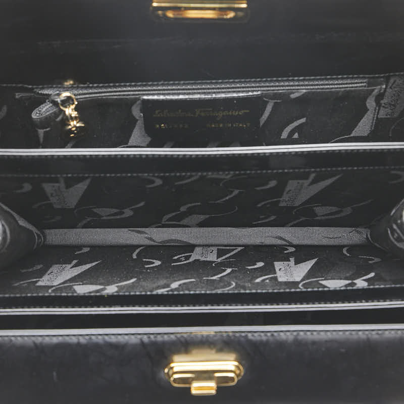 サルヴァトーレフェラガモ ガンチーニ ショルダーバッグ トートバッグ E217663 ブラック レザー レディース Salvatore Ferragamo 【中古】