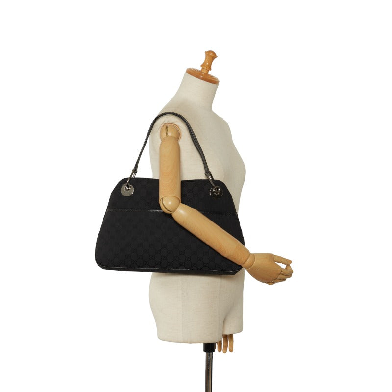 グッチ GGキャンバス ハンドバッグ トートバッグ 121023 ブラック キャンバス レザー レディース GUCCI 【中古】